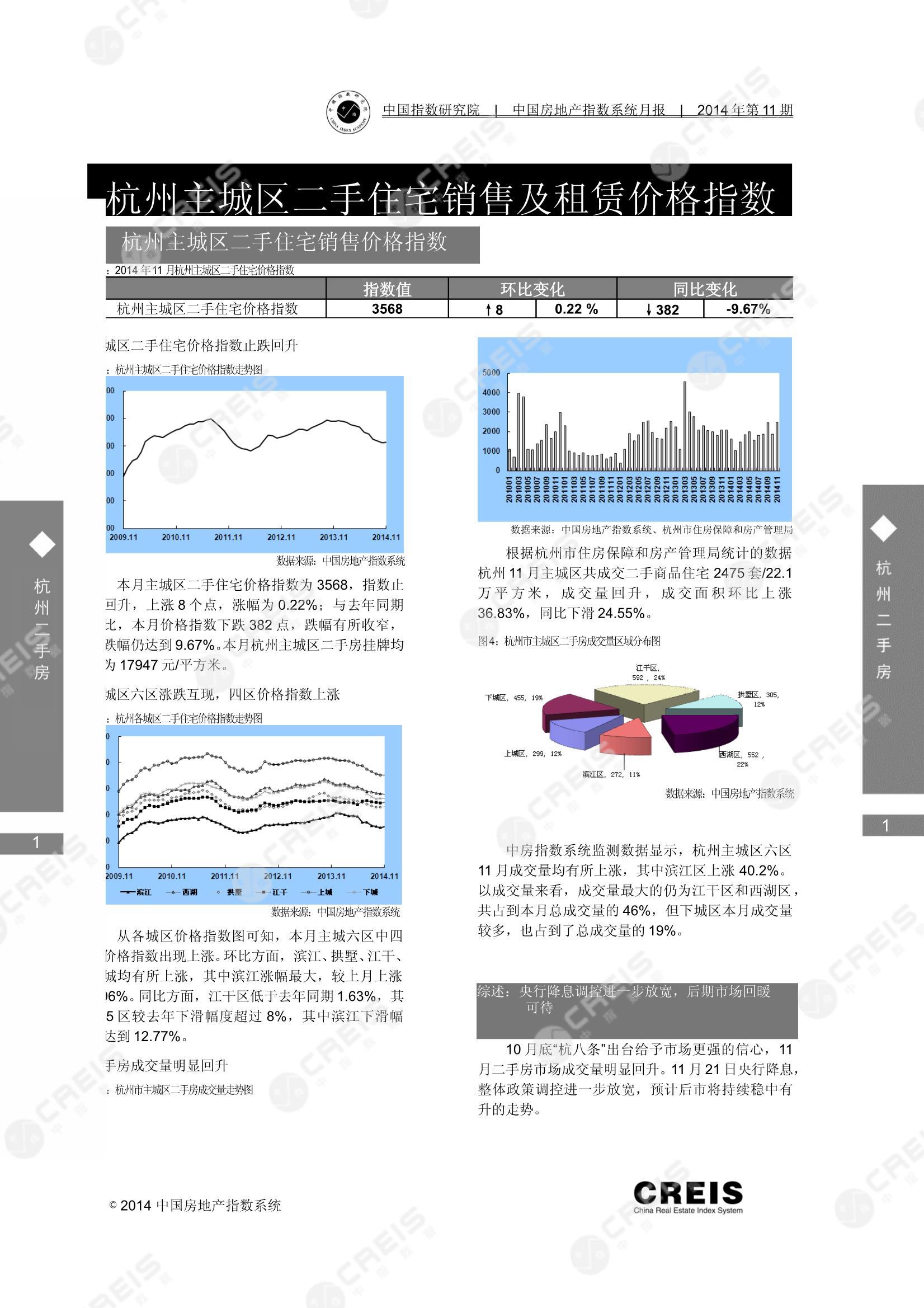 《杭州主城区二手住宅及租赁价格指数(2014年11月)》