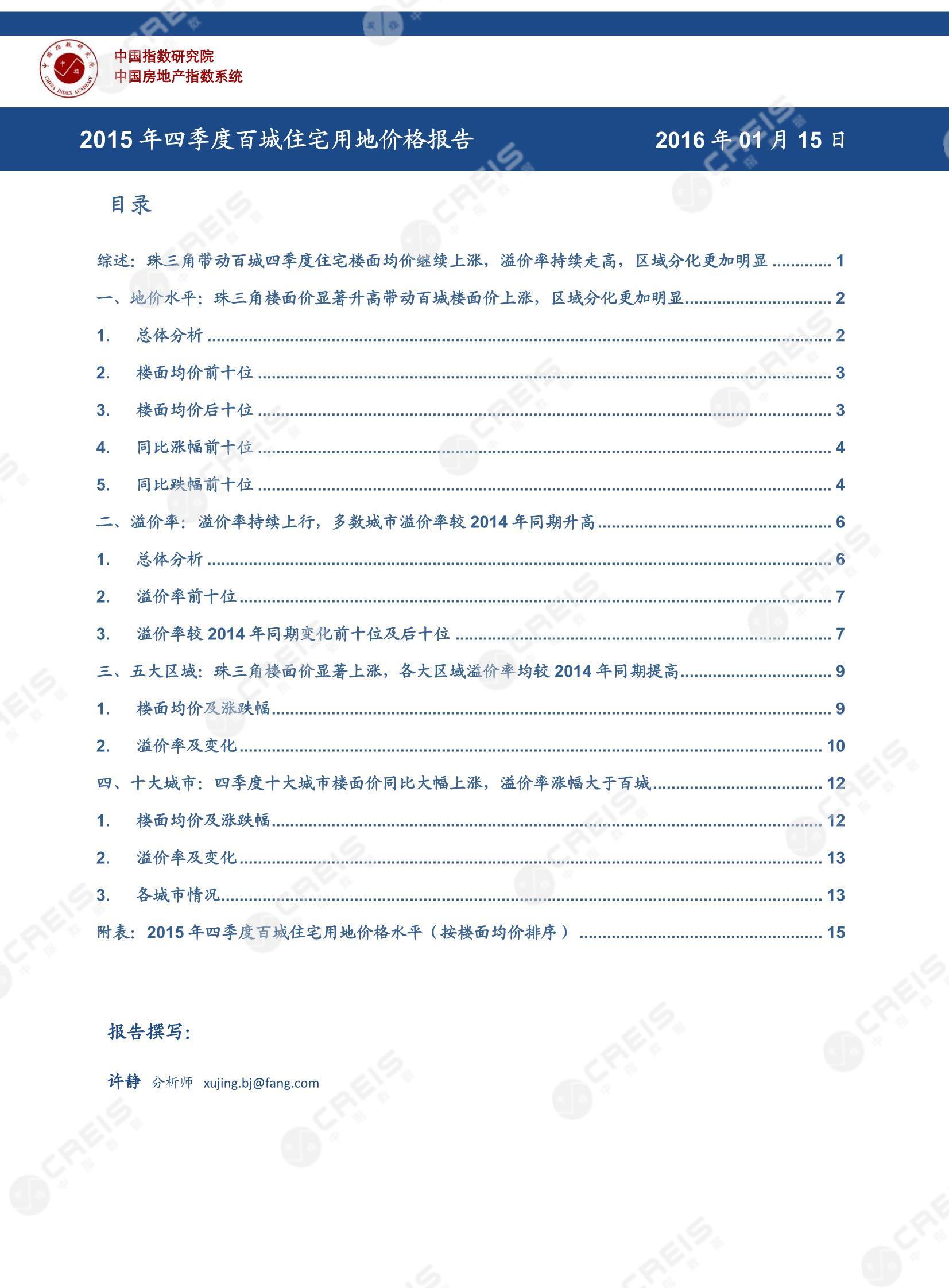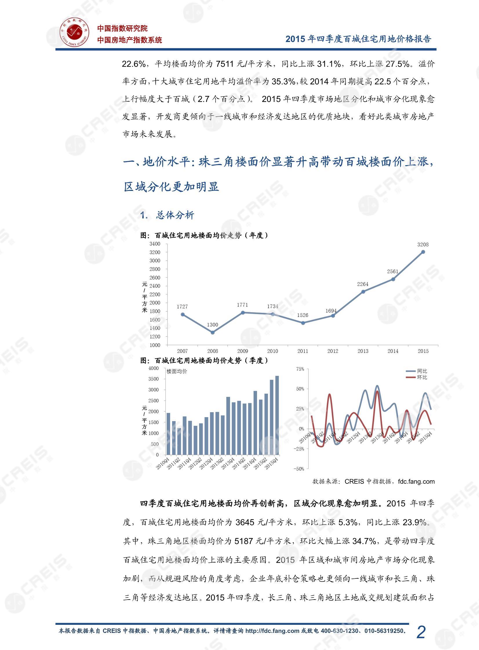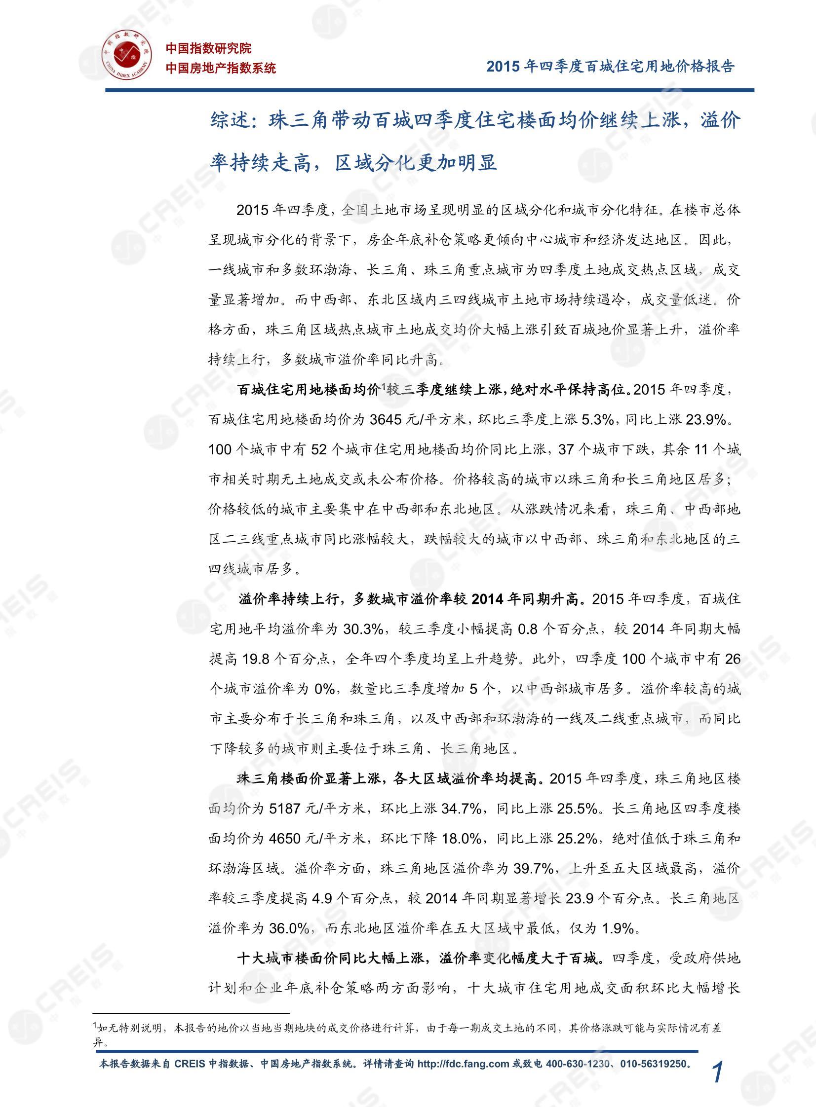 《2015年四季度百城住宅用地价格报告》