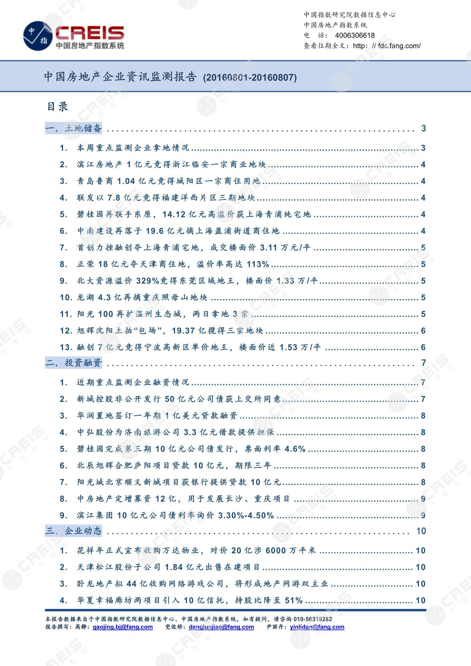 《中国房地产企业资讯监测报告(2016年8月1日-2016年8月7日)》