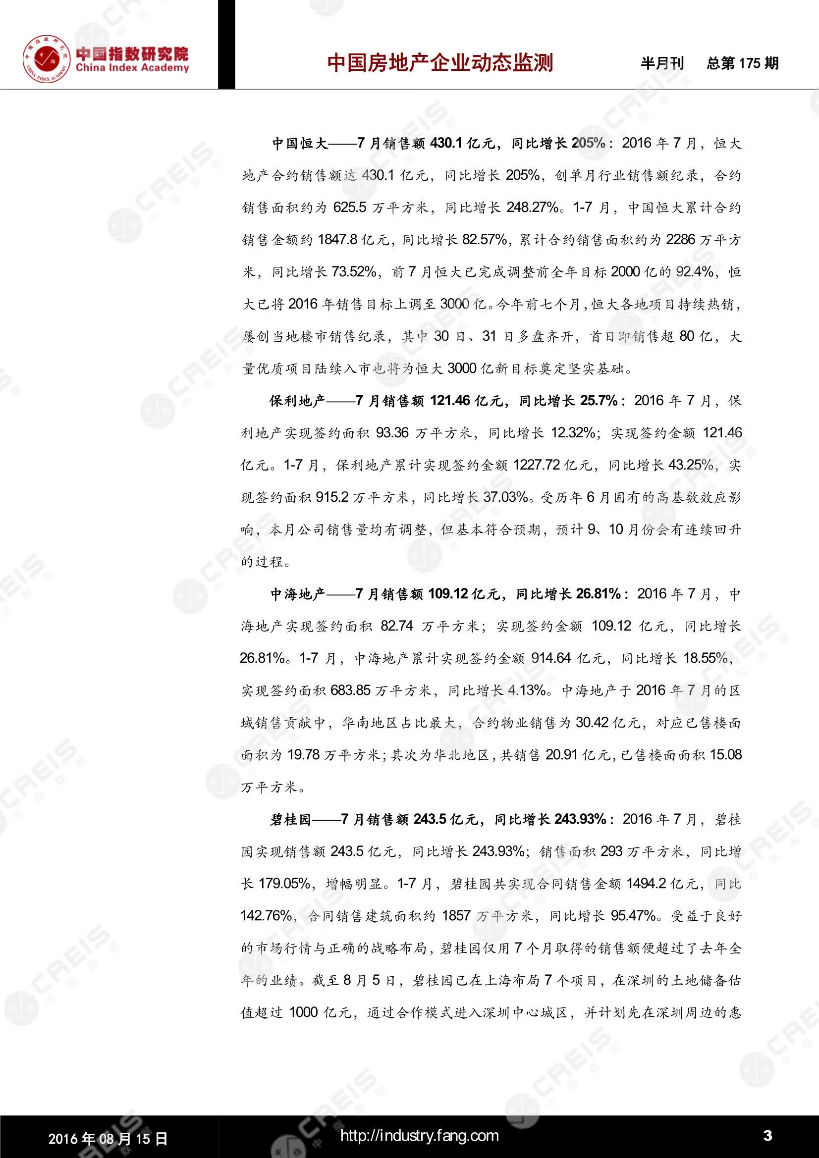 • [摘要] 经营动态:房企7月销售业绩同比继续增长,恒大430亿创单月销售新高 融资投资:公司债发行放缓,银行贷款、信托及资产证券化补充资金来源 土地储备:上海、武汉、济南等一二线城市交易活跃,区域单价纪录频被刷新 重大事项:新世界中国完成私有化退市,万达商业私有化决议获股东大会通过