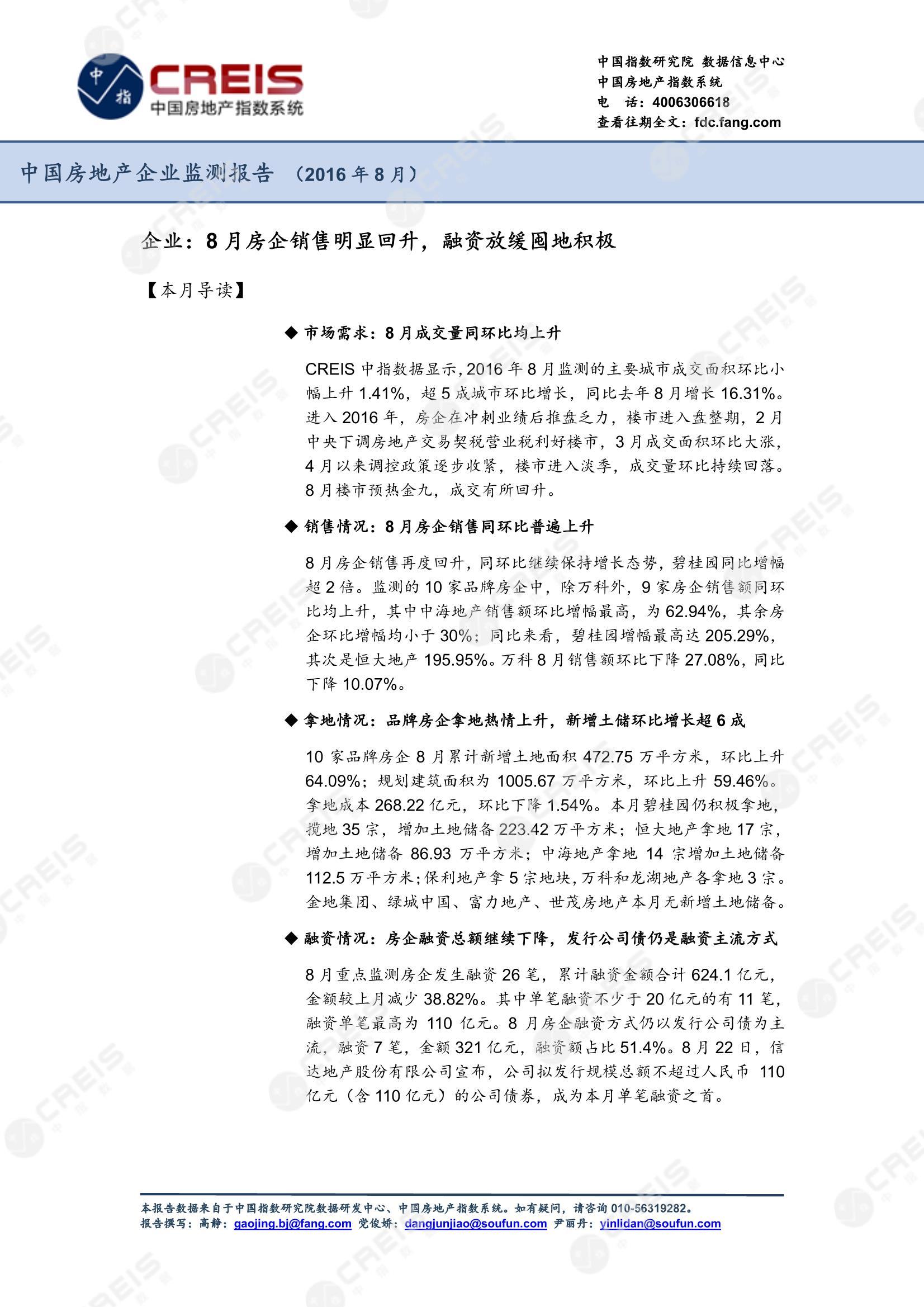 • [摘要] 企业: 8月房企销售明显回升,融资放缓囤地积极 销售情况:8月房企销售同环比普遍上升 拿地情况:品牌房企拿地热情上升,新增土储环比增长超6成 融资情况:房企融资总额继续下降,发行公司债仍是融资主流方式