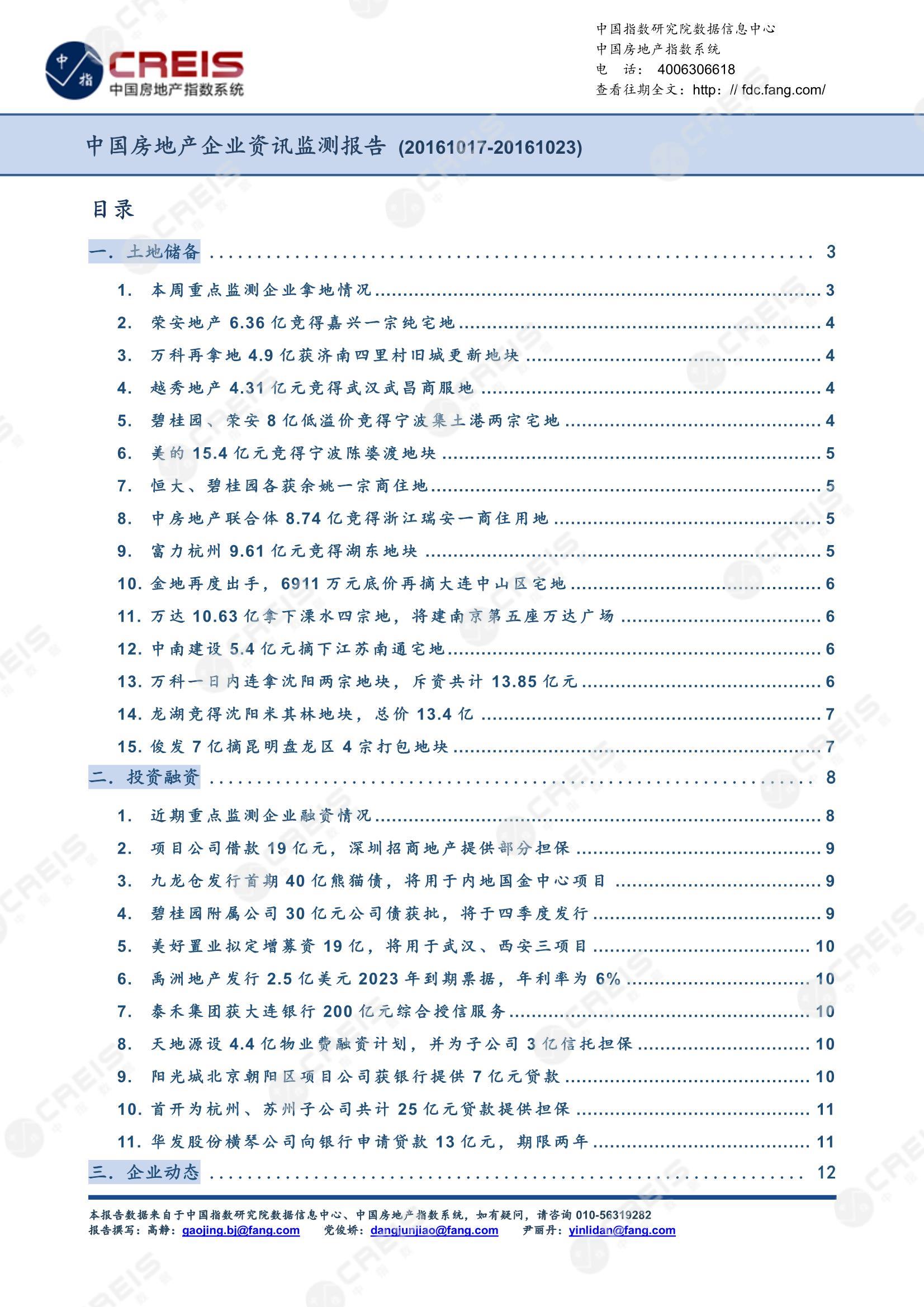 《中国房地产企业资讯监测报告(2016年10月17日-2016年10月23日)》
