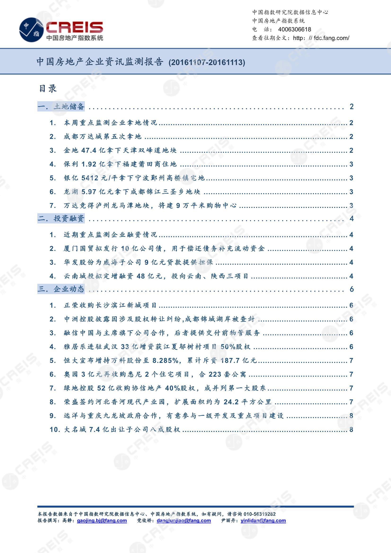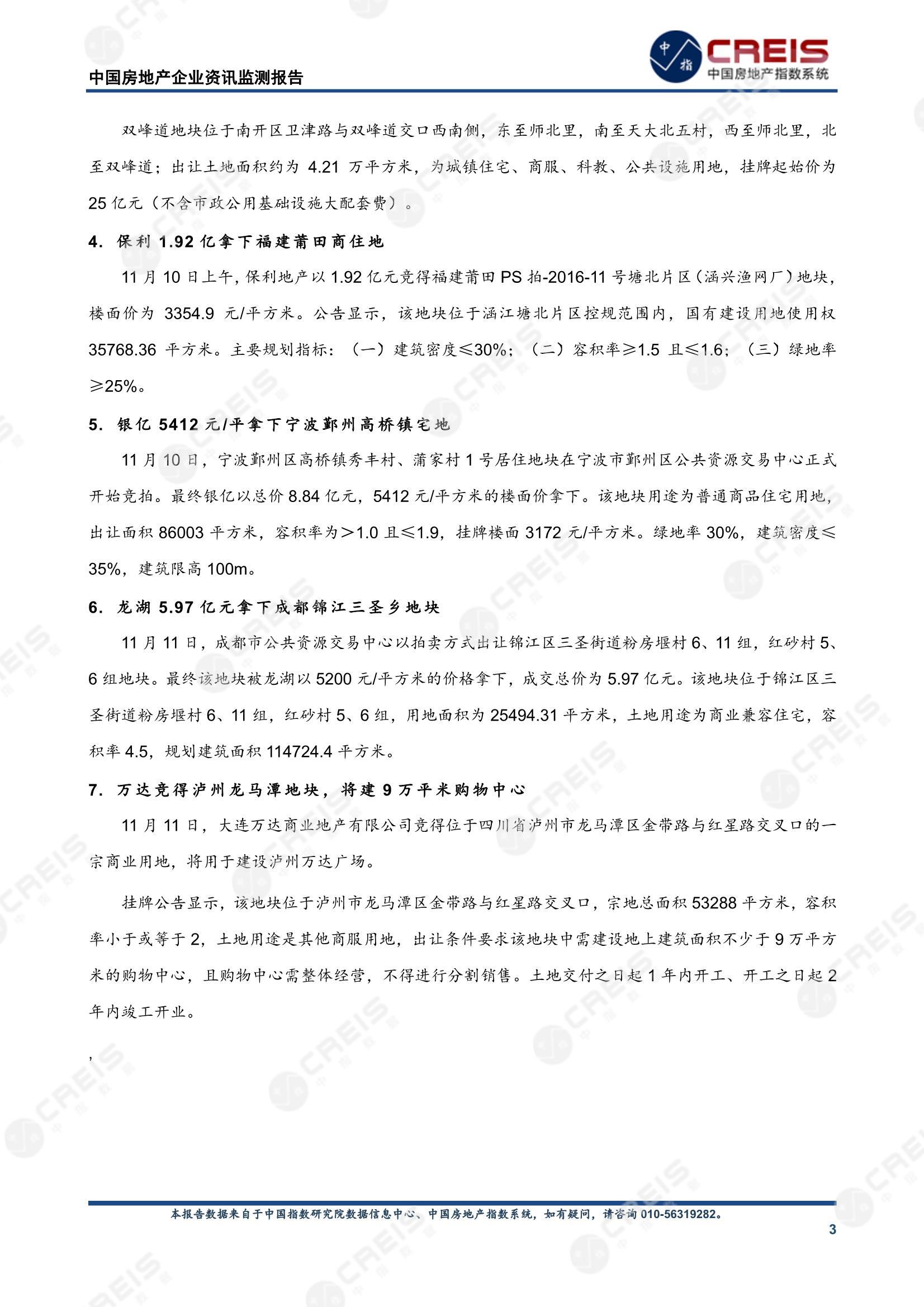 《中国房地产企业资讯监测报告(2016年11月7日-2016年11月13日)》