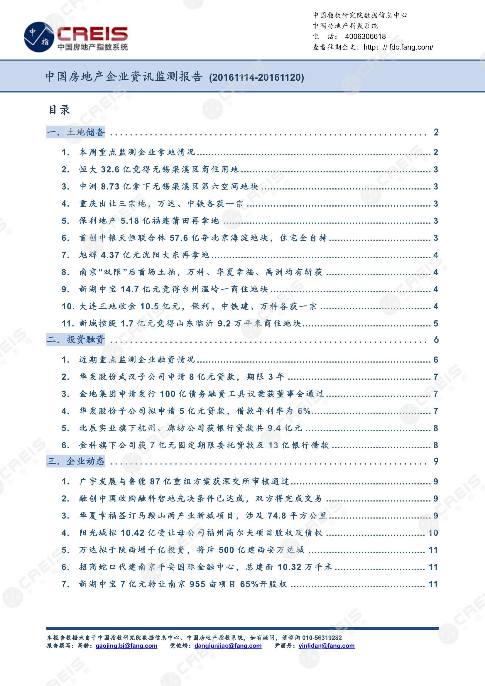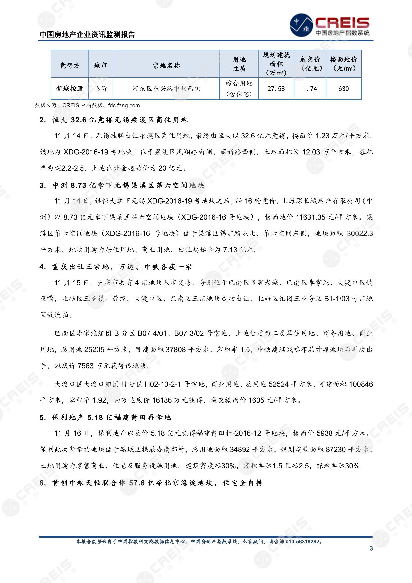 《中国房地产企业资讯监测报告(2016年11月14日-2016年11月20日)》
