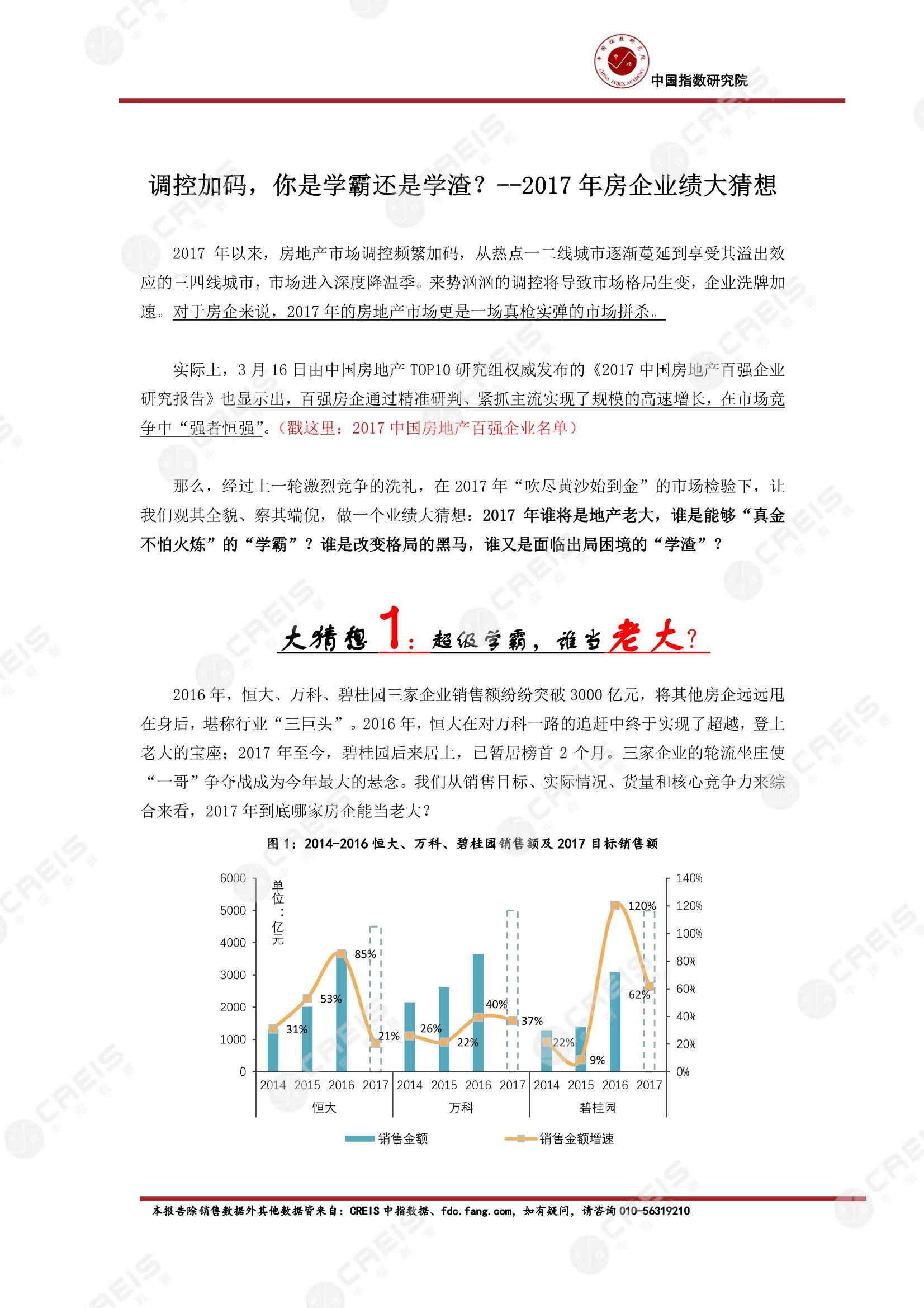 《调控加码,你是学霸还是学渣?-2017中国房企业绩大猜想》