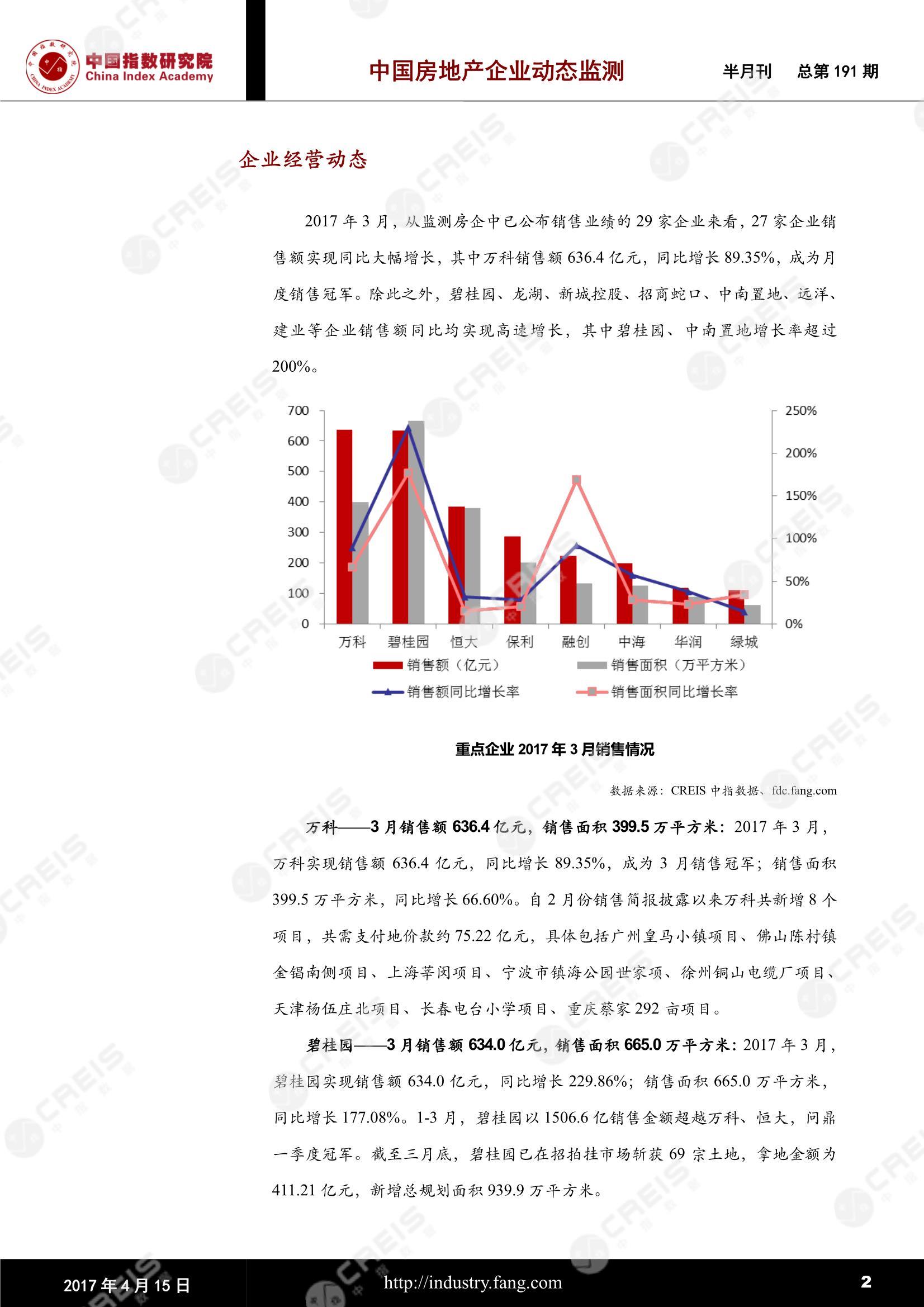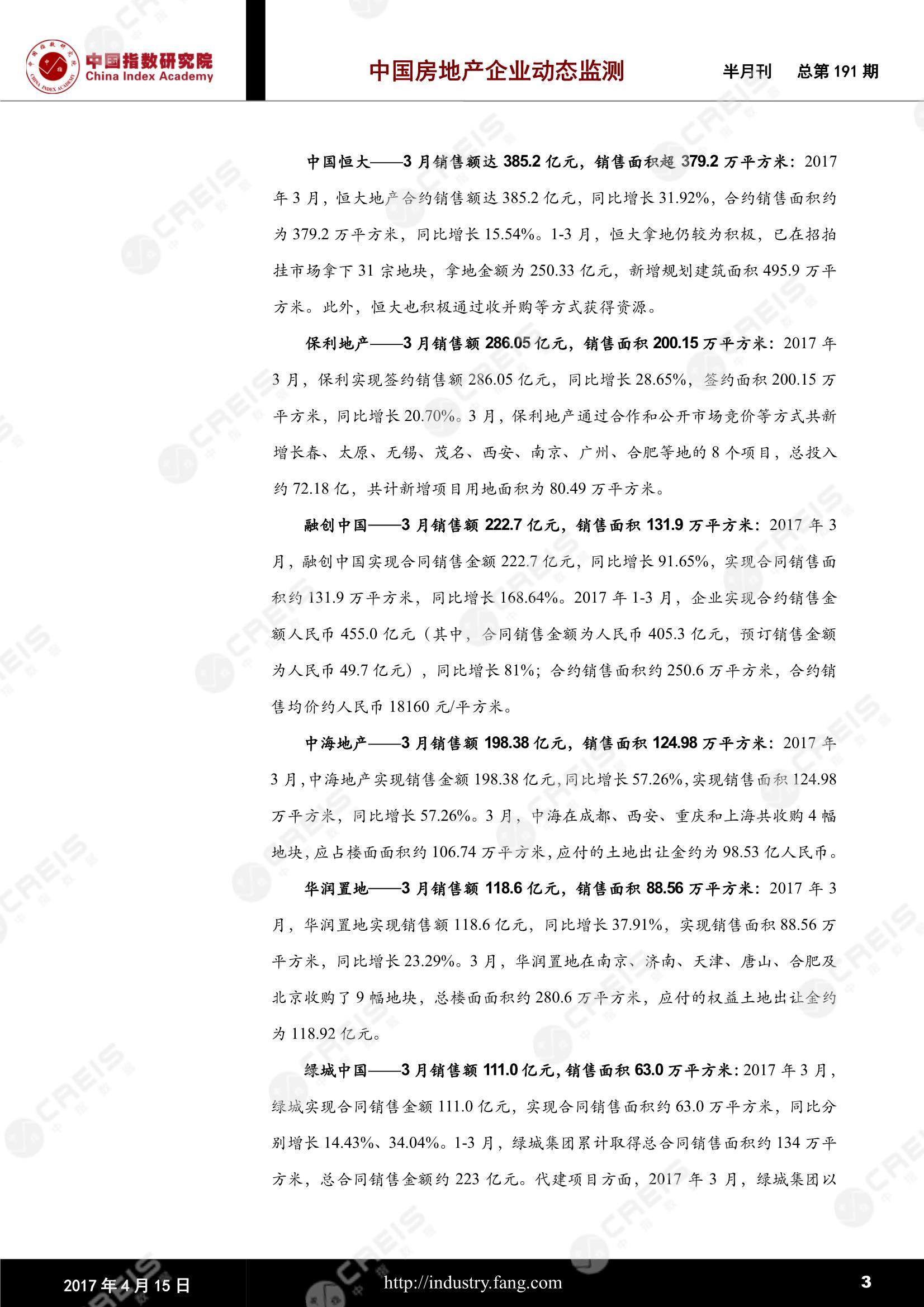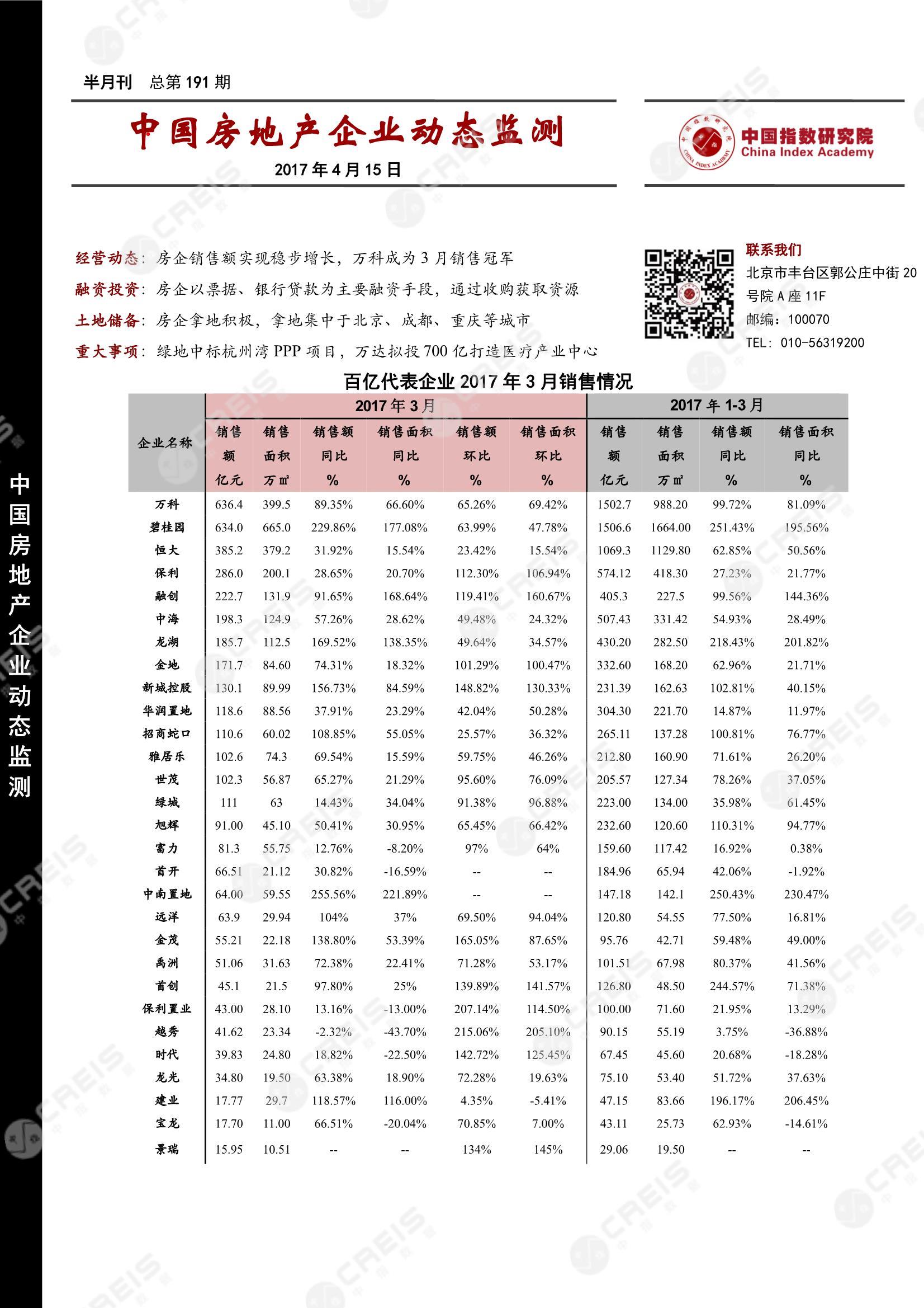 中国房地产企业动态监测第191期