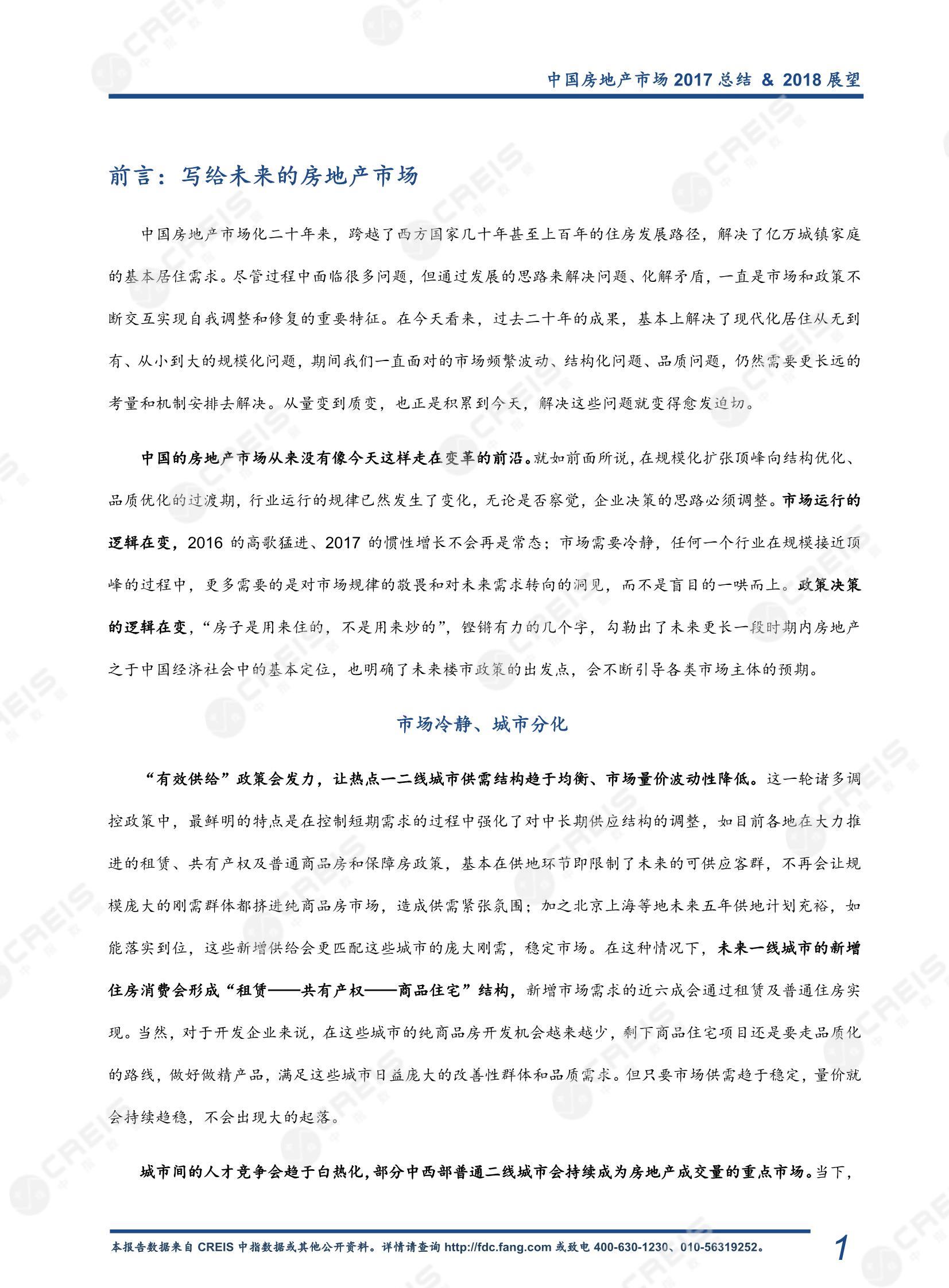 • [摘要] 报告分为两部分:第一部分全方位深入总结2017年房地产市场运行情况及特点,第二部分预判2018年市场走势以及中长期行业发展趋势及关注点