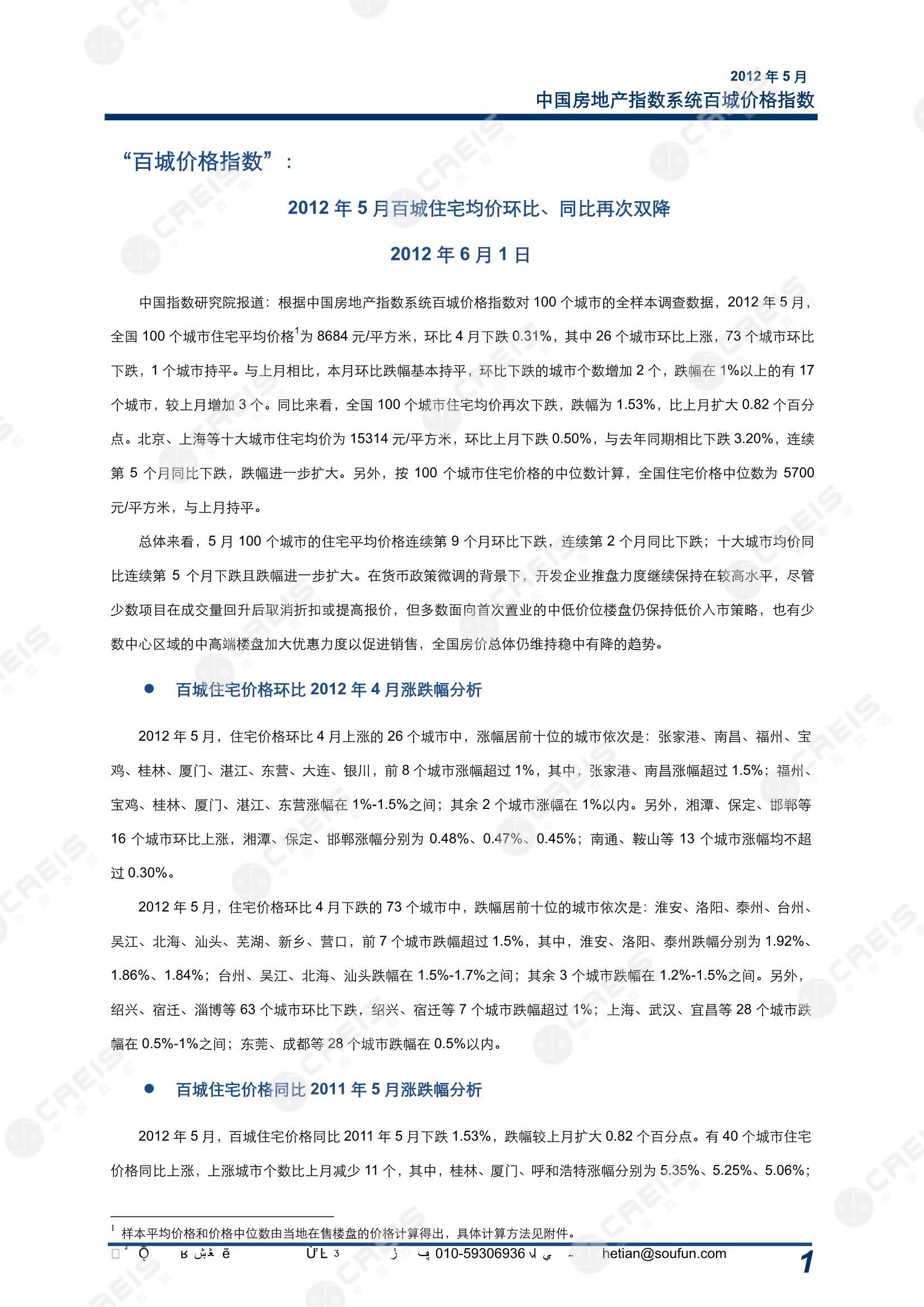 《中国房地产指数系统百城价格指数(2012年5月)》
