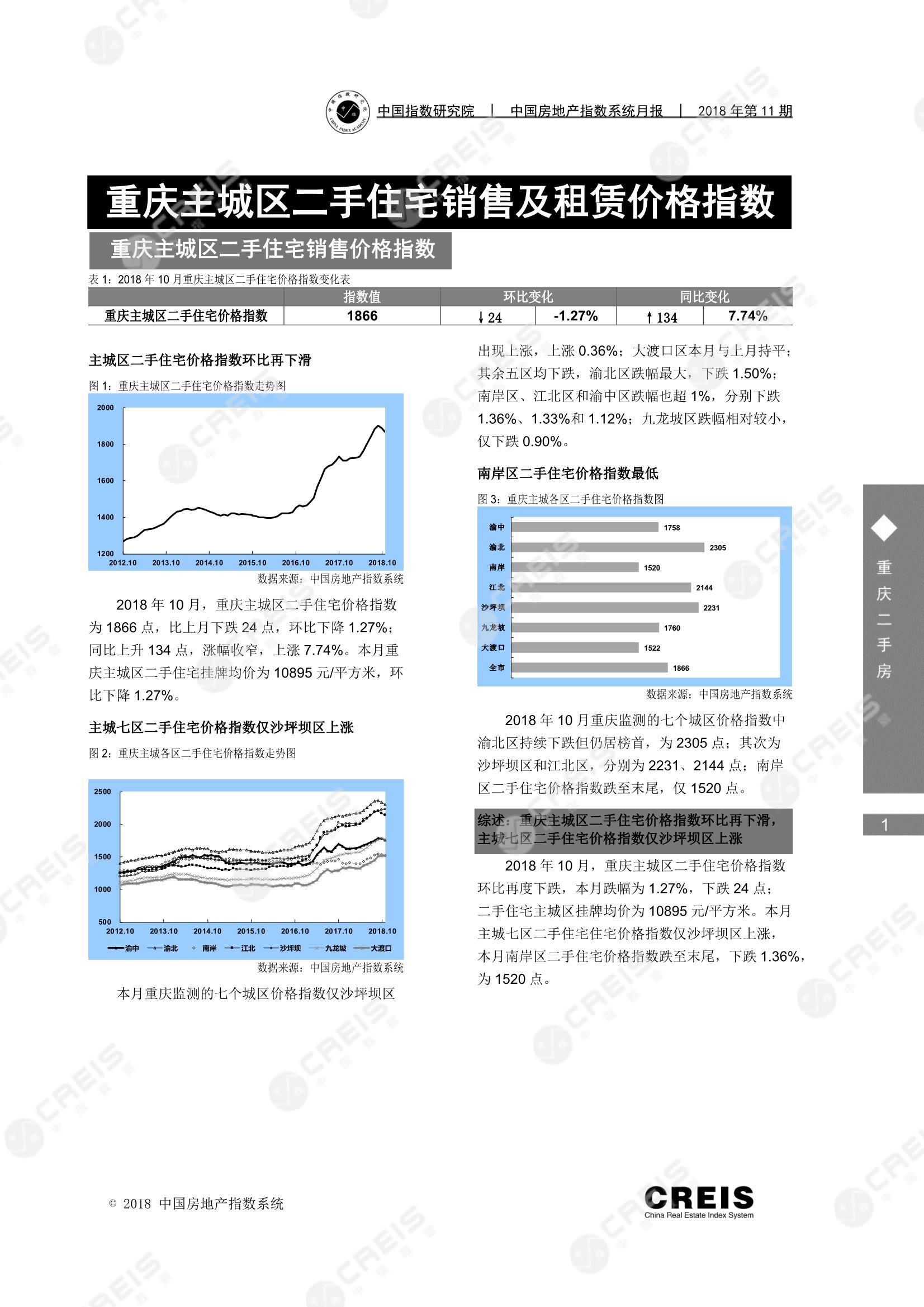 《重庆主城区二手住宅销售及租赁价格指数报告(2018年10月)》