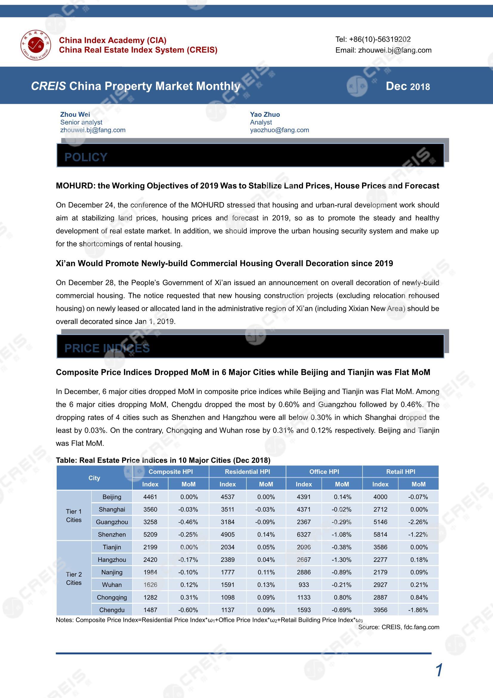 CREIS China Property Market Monthly (Dec 2018)