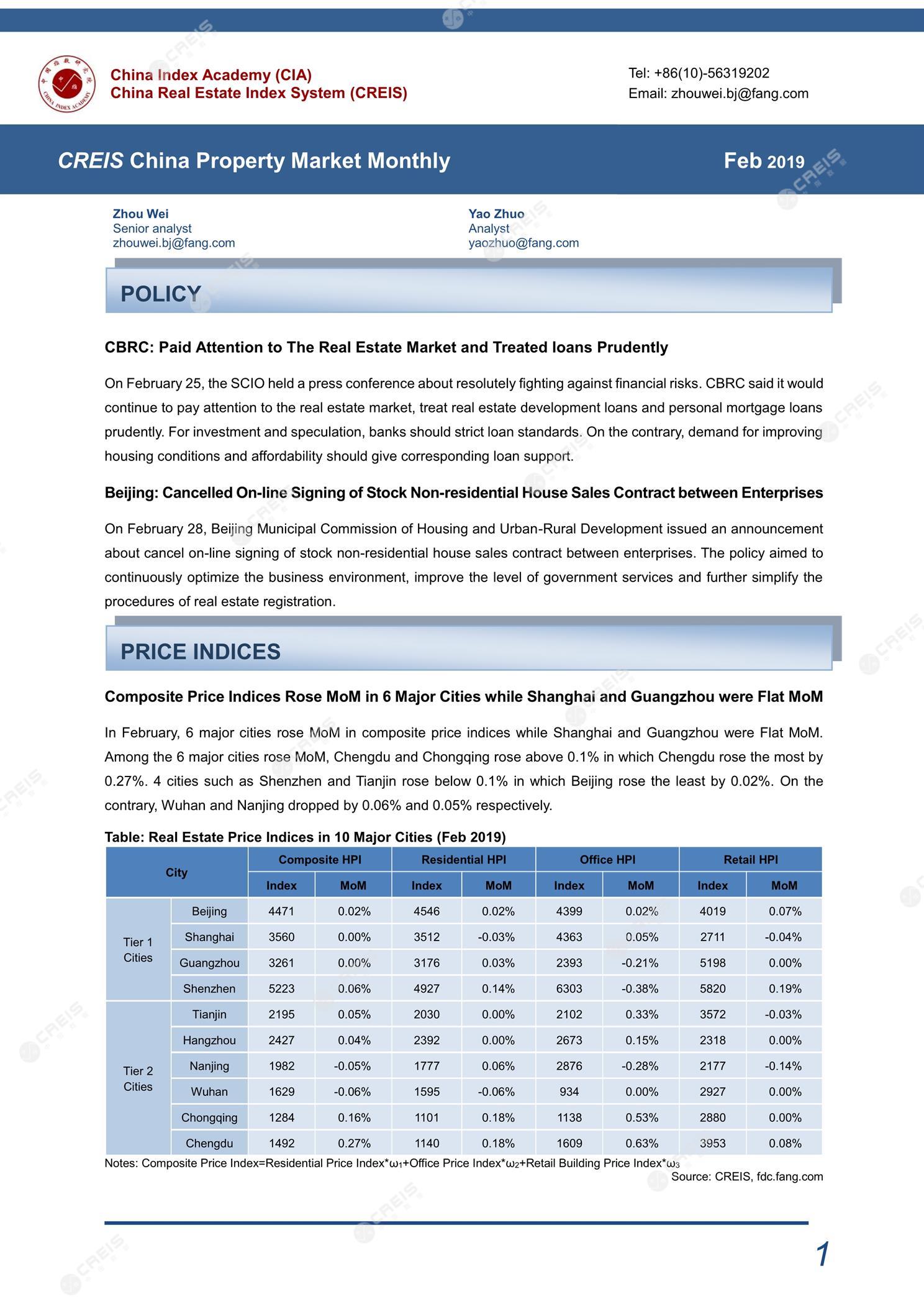 《CREIS China Property Market Monthly (Feb 2019)》