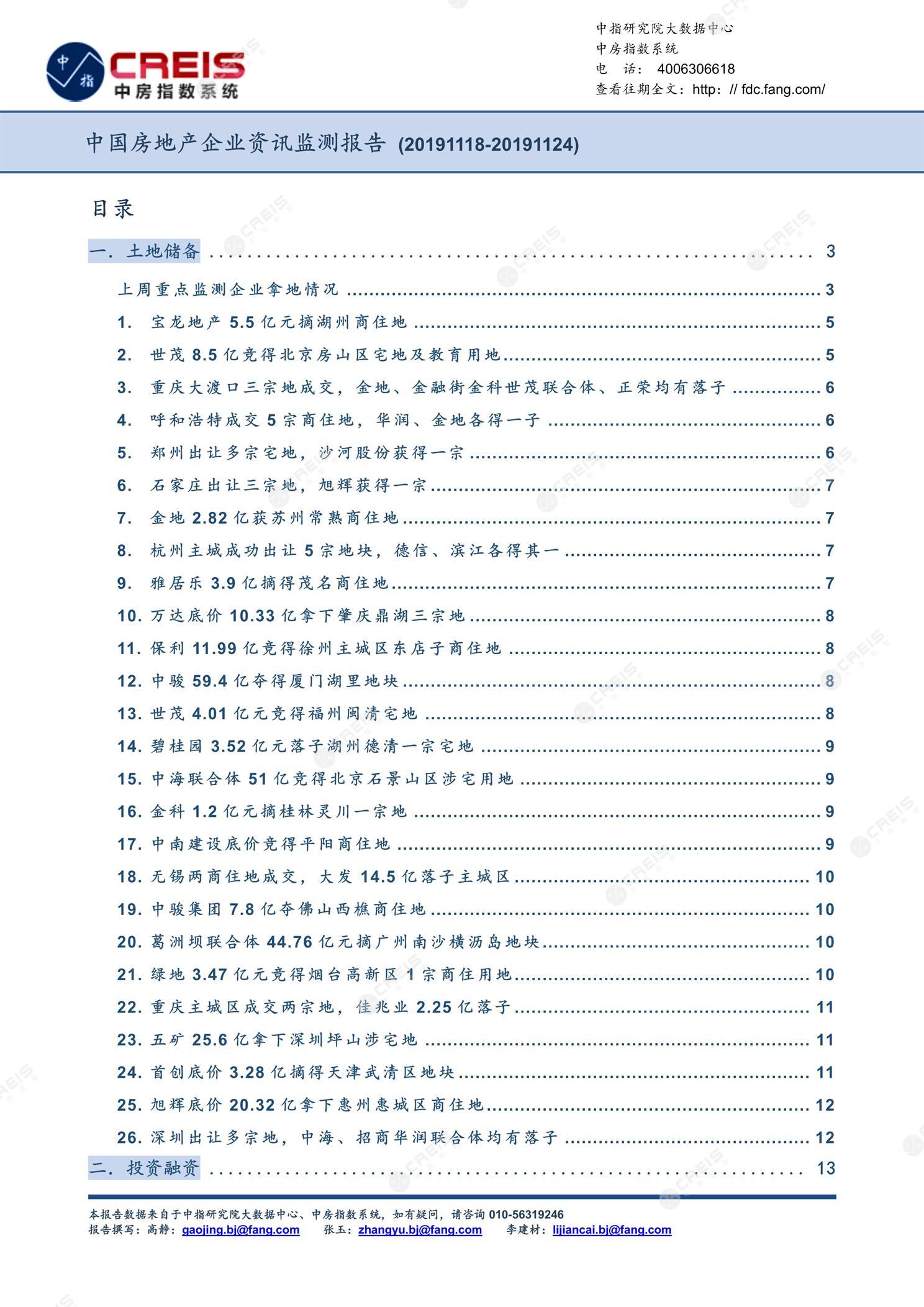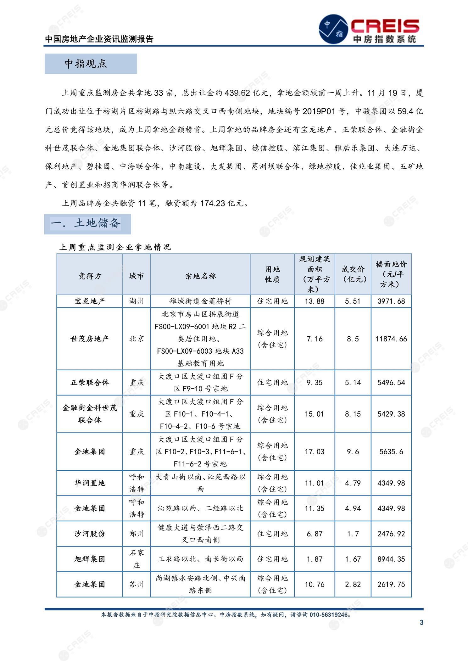《中国房地产企业资讯监测报告(2019年11月18日-2019年11月24日)》