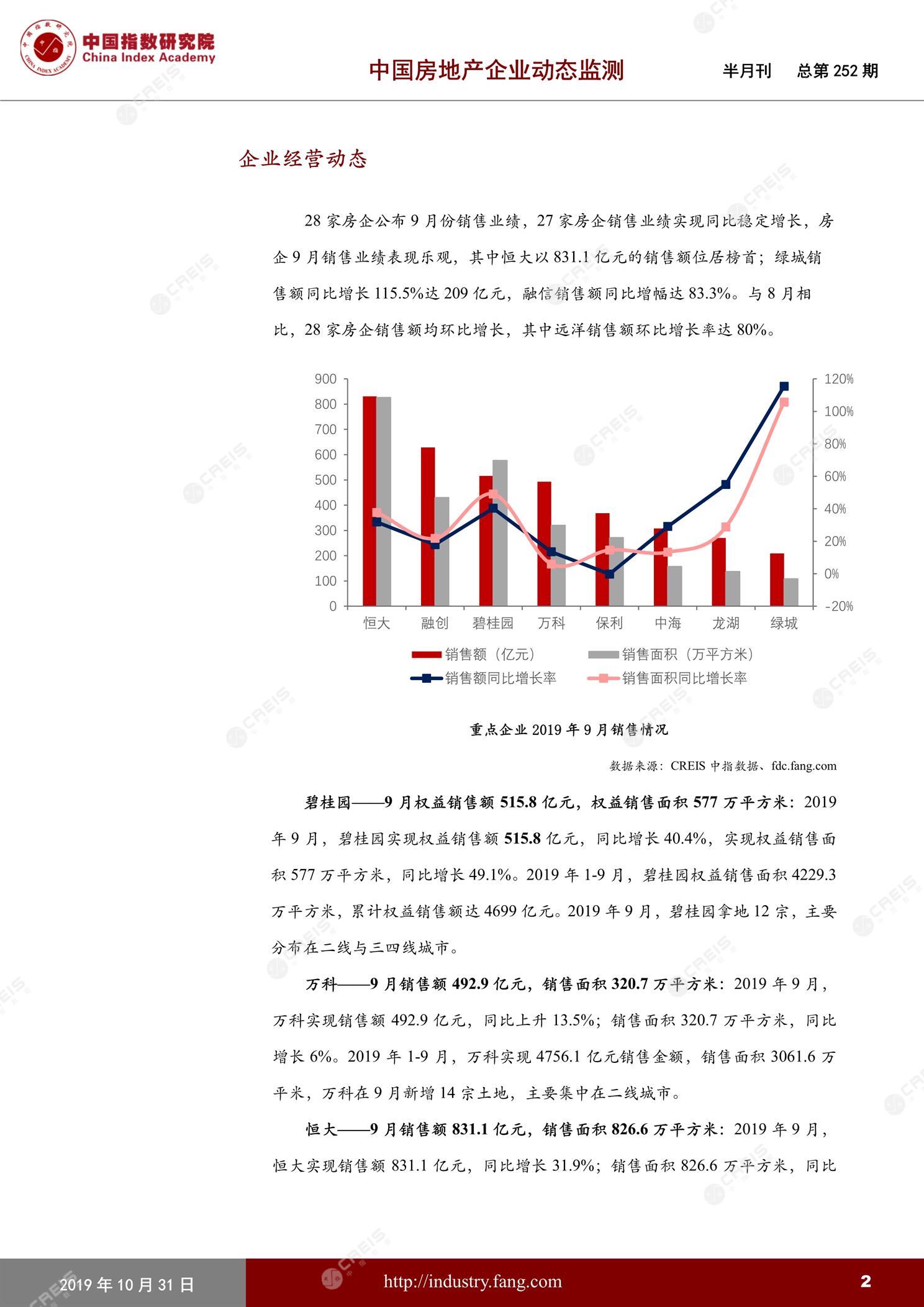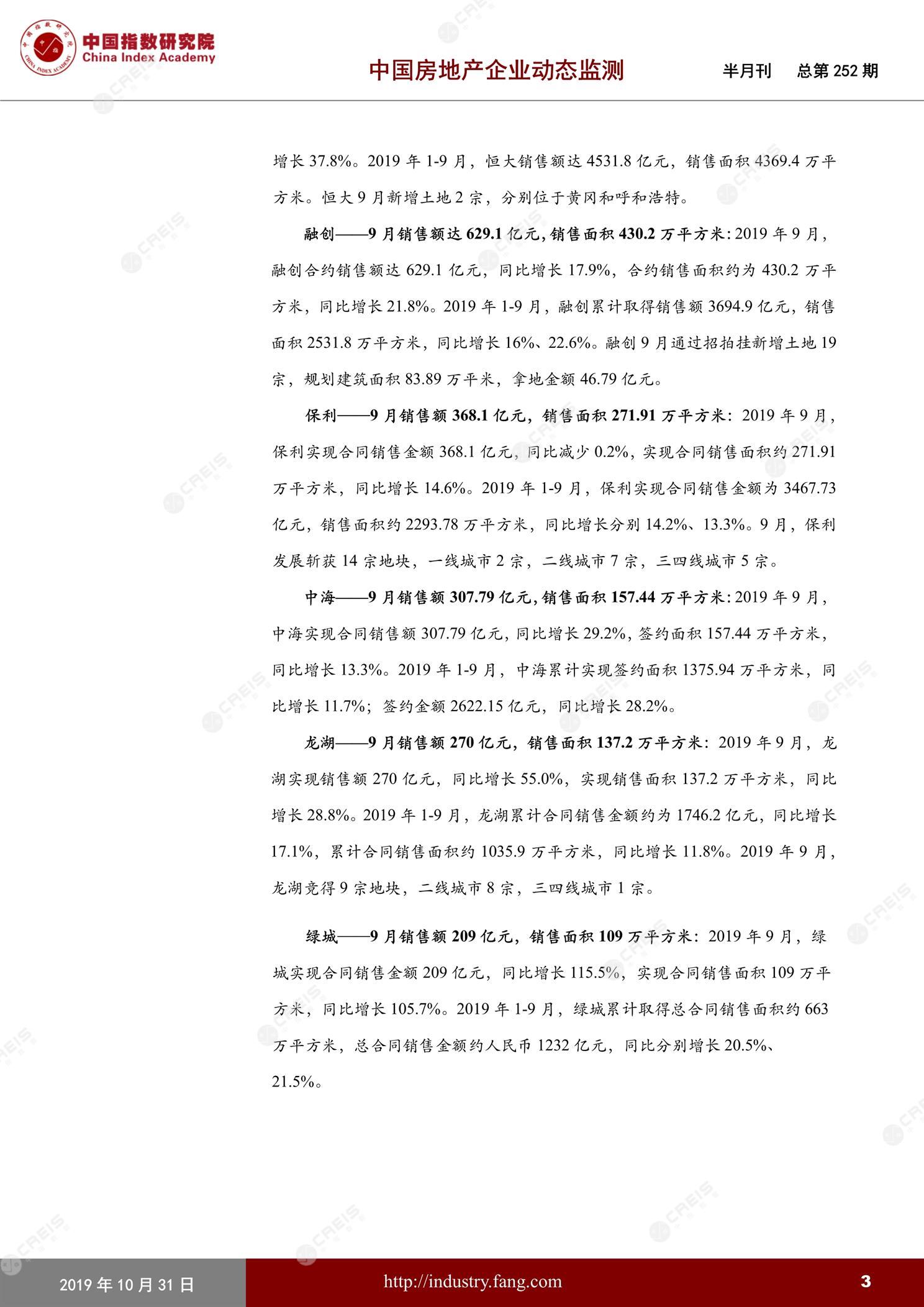 • [摘要] 经营动态:房企9月销售业绩稳定增长,恒大月销831.1亿夺冠 融资投资:房企融资类型以优先票据为主,部分以收并购获取投资机会 土地储备:房企积极拿地,拿地城市集中在武汉、珠海、青岛等城市 重大事项:中海地产更名,融创获文化小镇大型项目