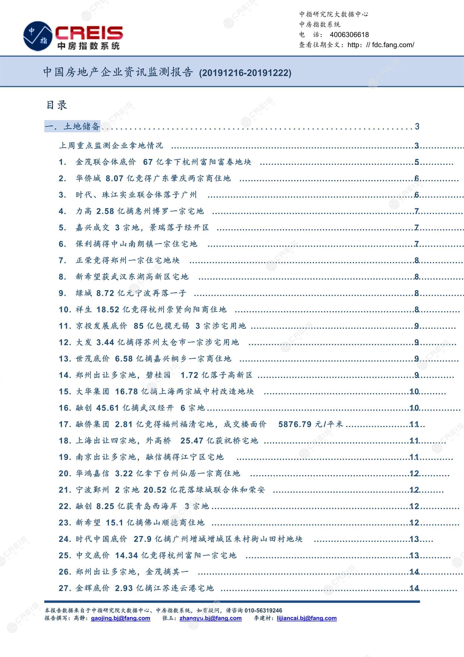 《中国房地产企业资讯监测报告(2019年12月16日-2019年12月22日)》