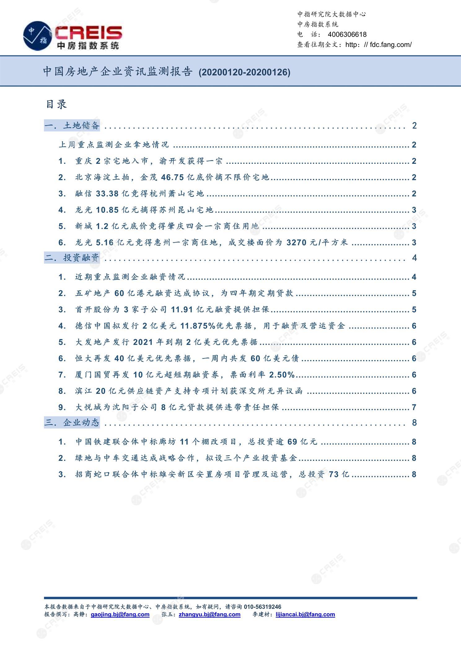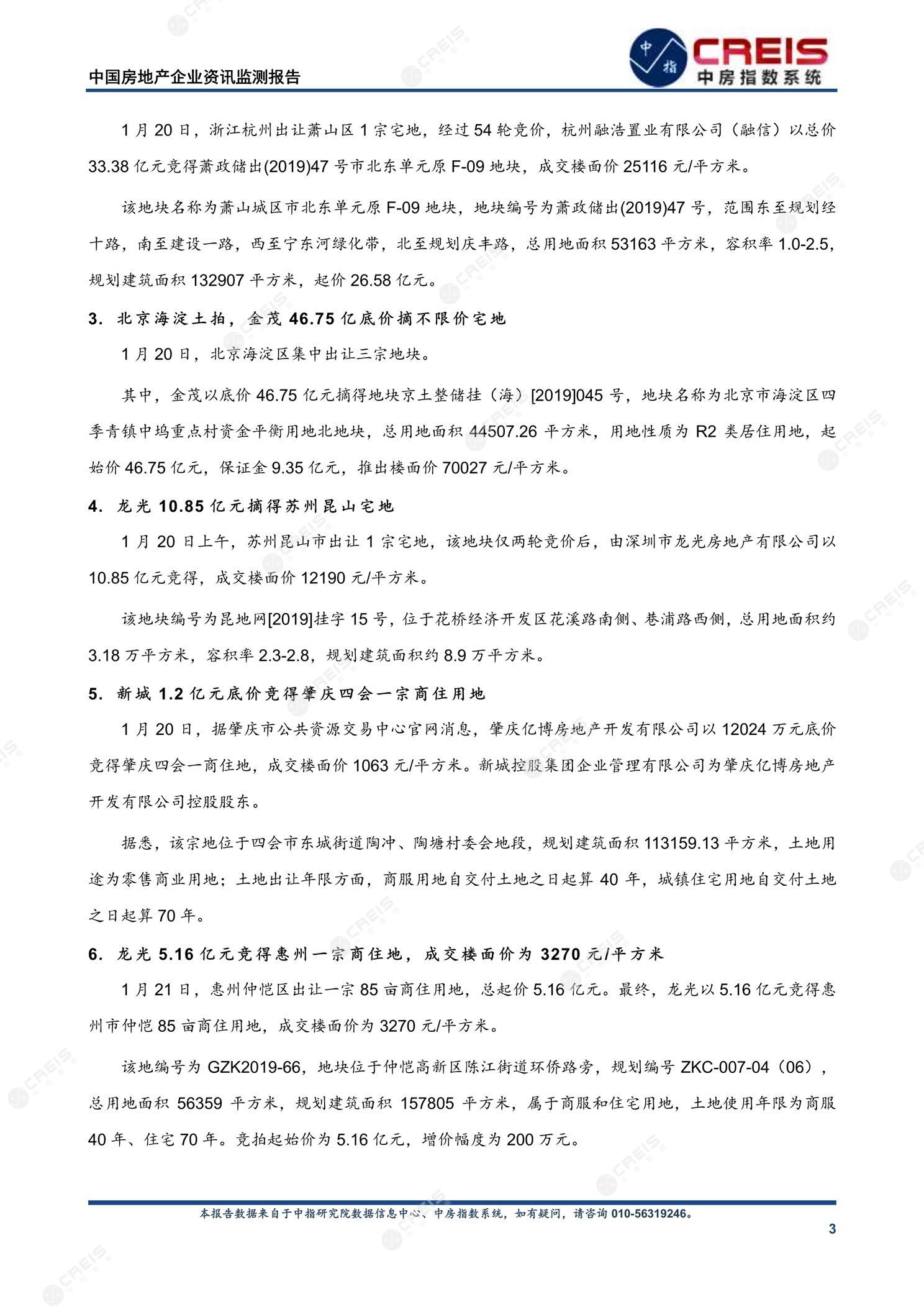 《中国房地产企业资讯监测报告(2020年1月20日-2020年1月26日)》