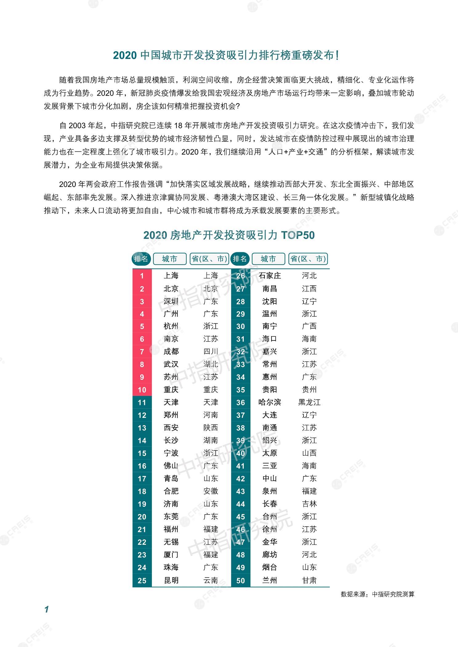 《2020中国城市开发投资吸引力排行榜重磅发布!》