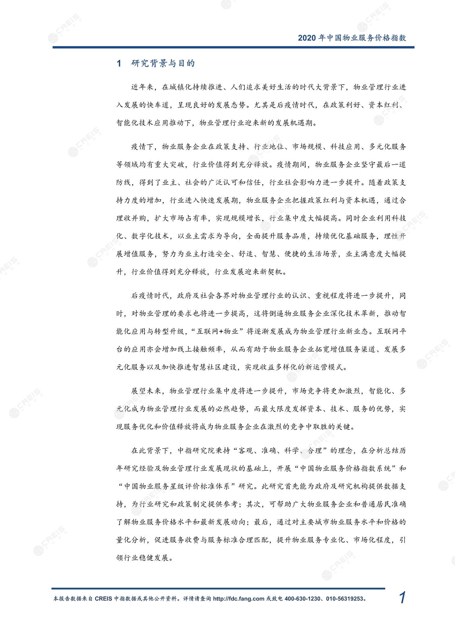 《 2020年中国物业服务价格指数研究报告》
