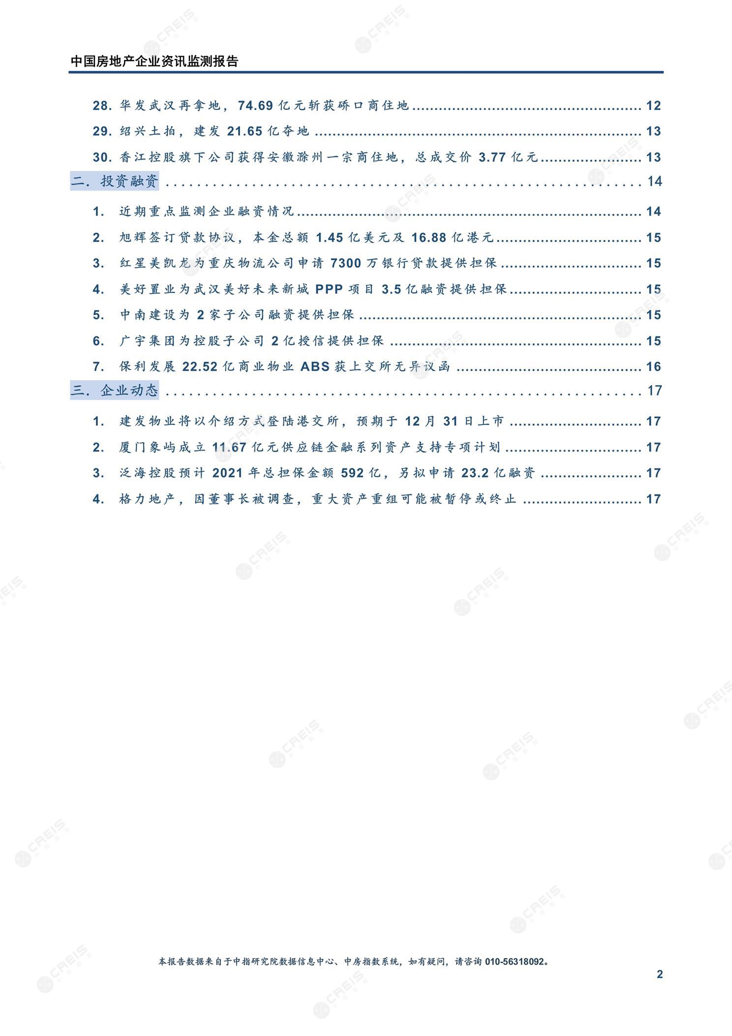 《中国房地产企业资讯监测报告(2020年12月28日-2021年01月03日)》