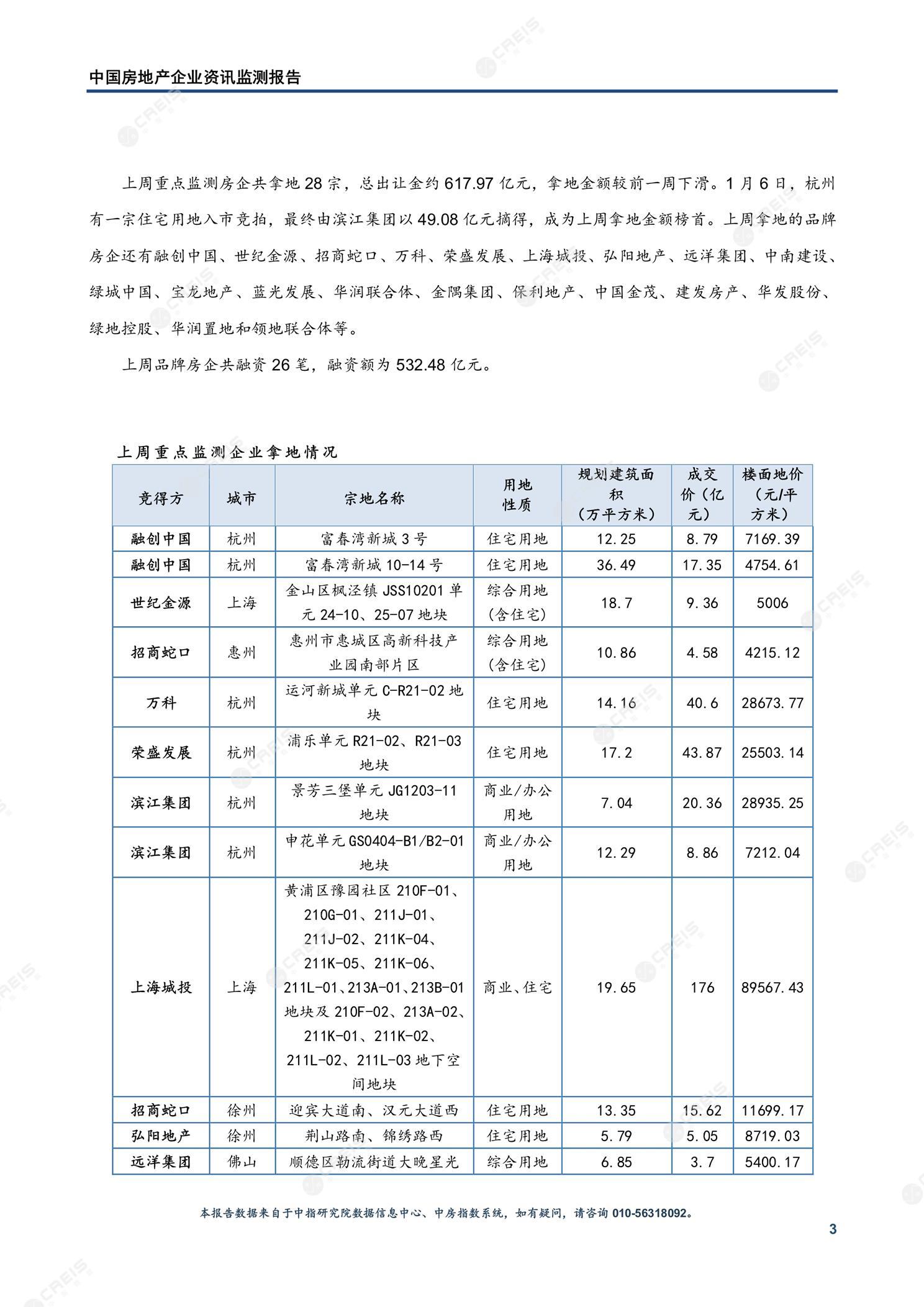 《中国房地产企业资讯监测报告(2021年01月04日-2021年01月10日)》
