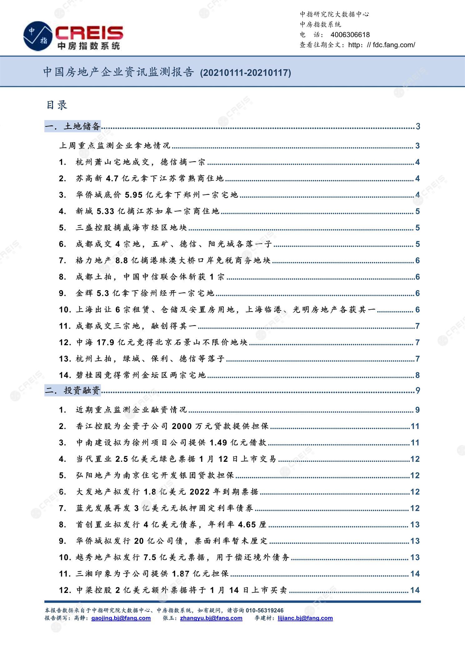 《中国房地产企业资讯监测报告(2021年01月11日-2021年01月17日)》