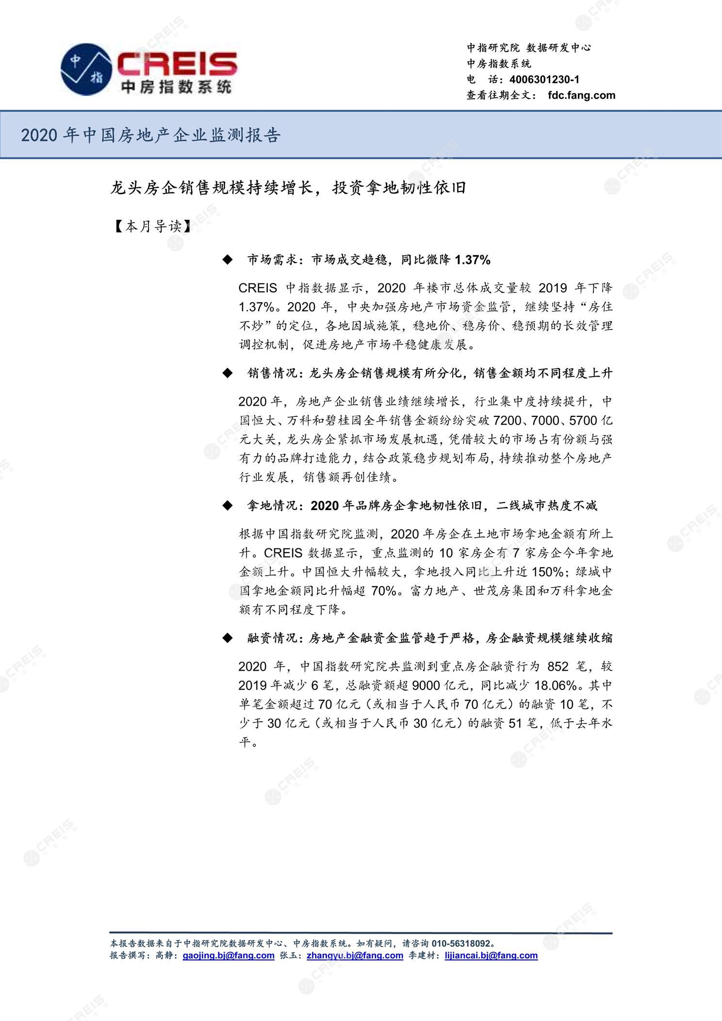 《2020年中国房地产企业监测报告》