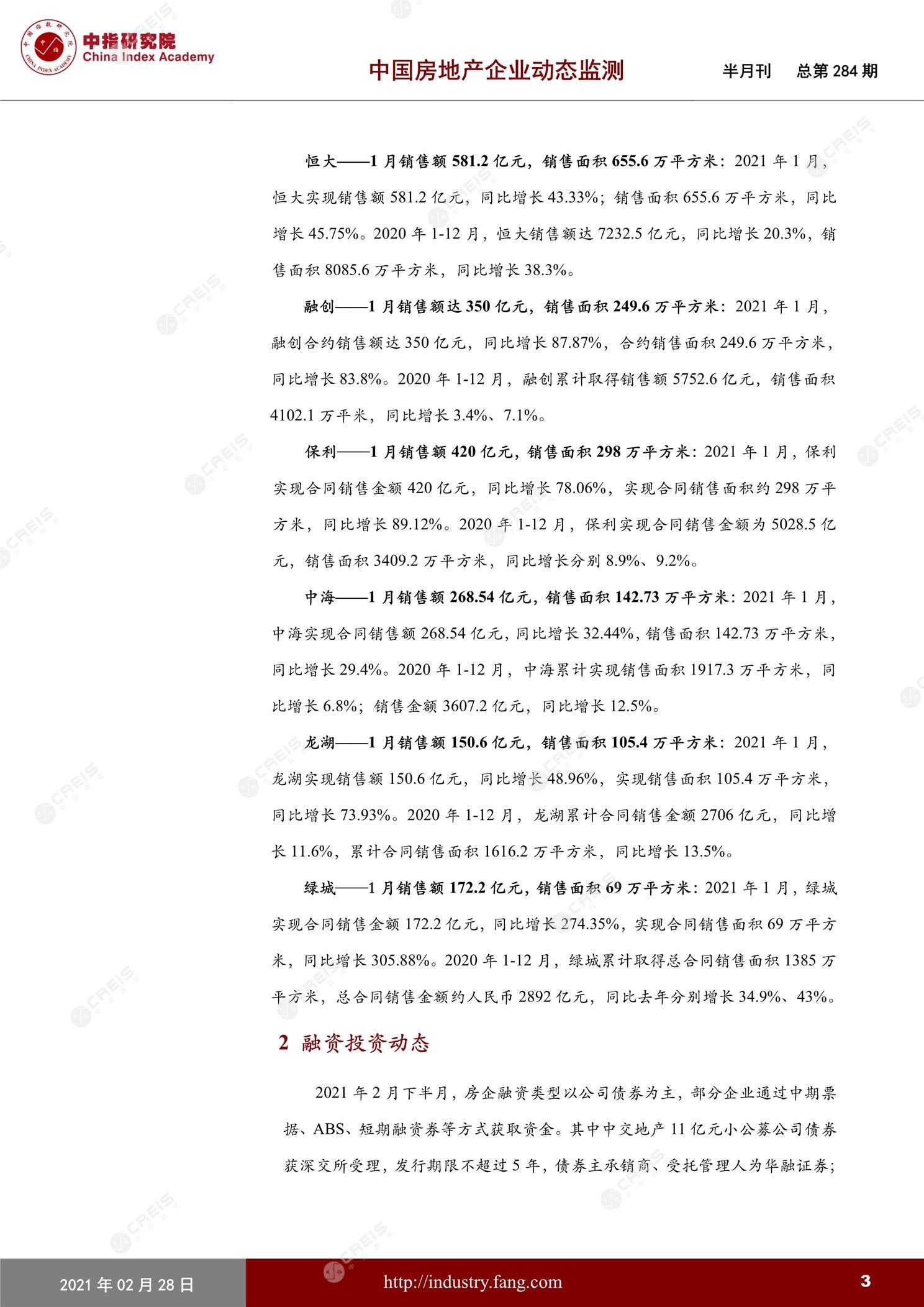 中国房地产企业动态监测第284期