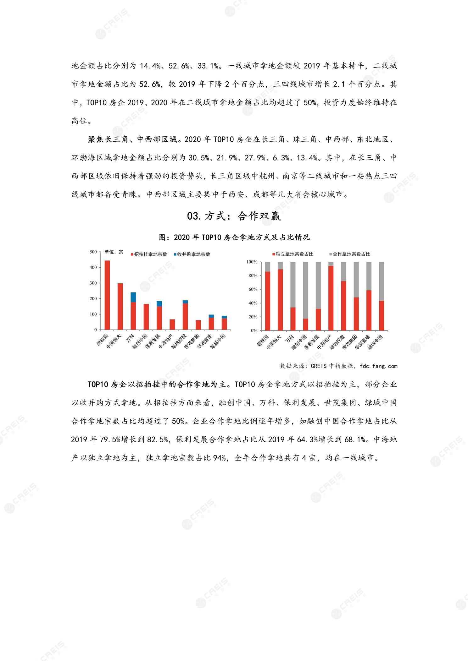 • [摘要] 2020年中央坚持“房住不炒”总基调不变,房地产金融审慎管理正式开启。2021年,房地产企业把控好拿地节凑和力度,将对企业发展产生重要影响。在此,我们选取中指院百亿排行榜TOP10房企作为样本,洞察分析2020年TOP10房企的投资拿地策略。