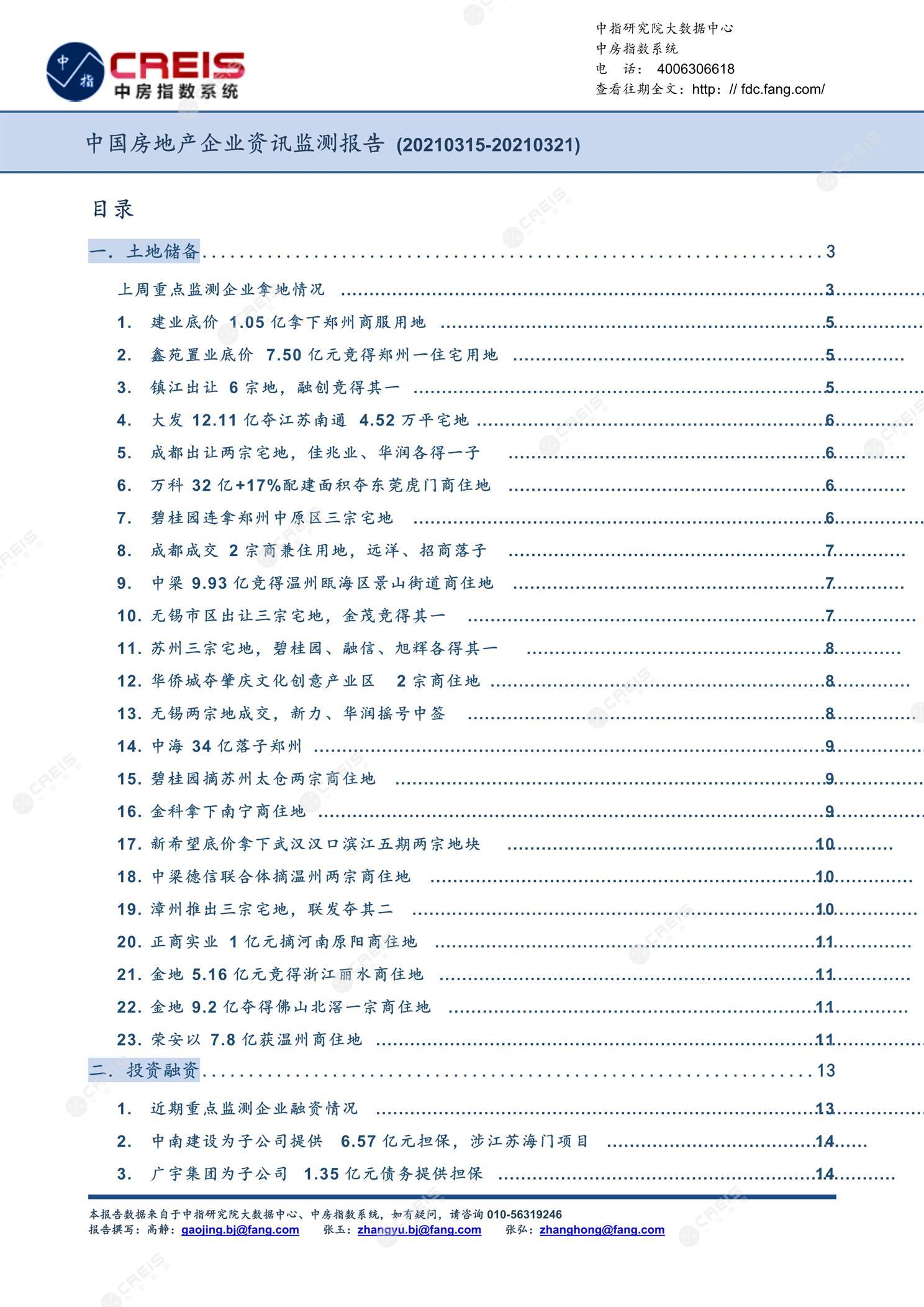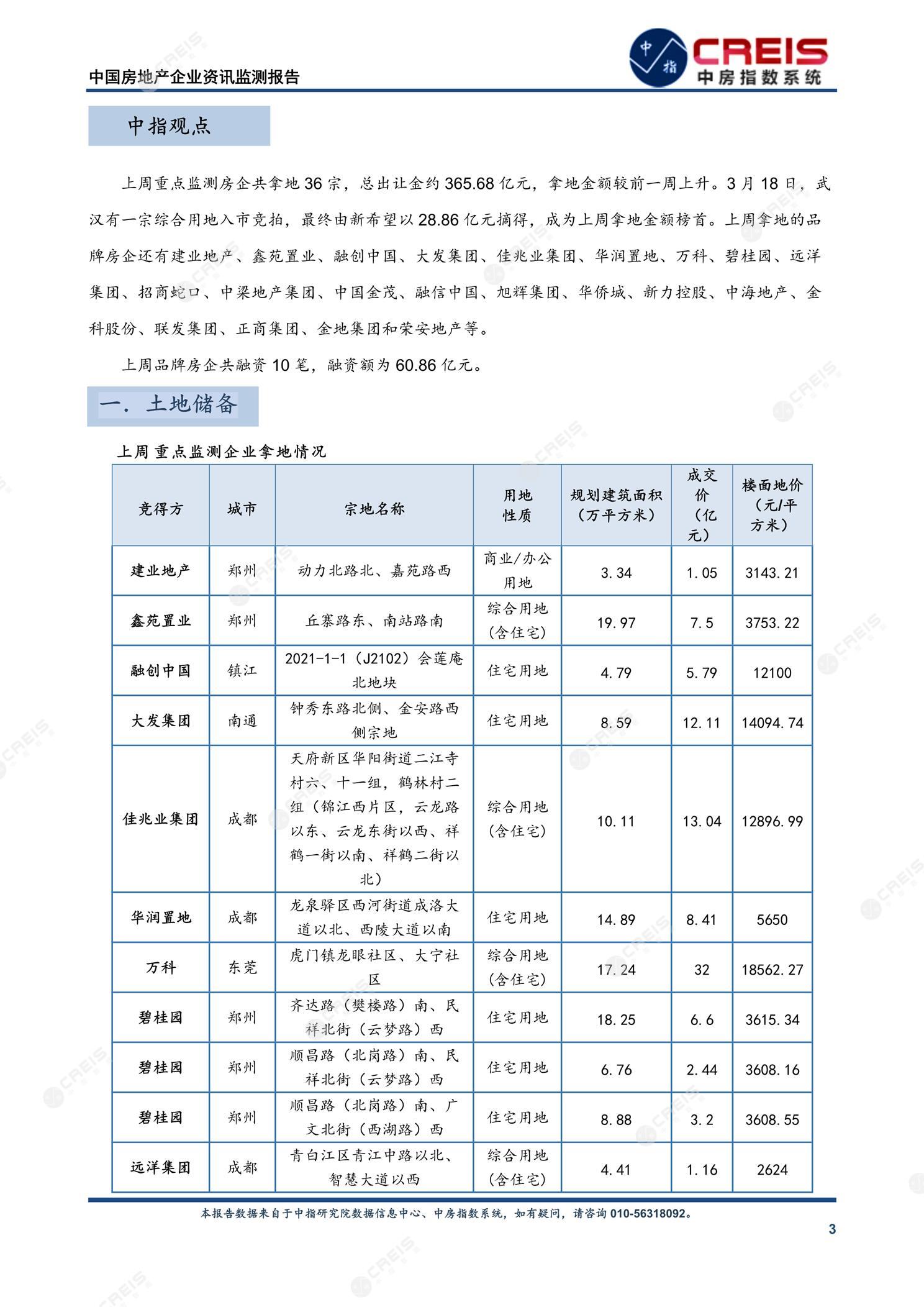 《中国房地产企业资讯监测报告(2021年3月15日-2021年3月21日)》