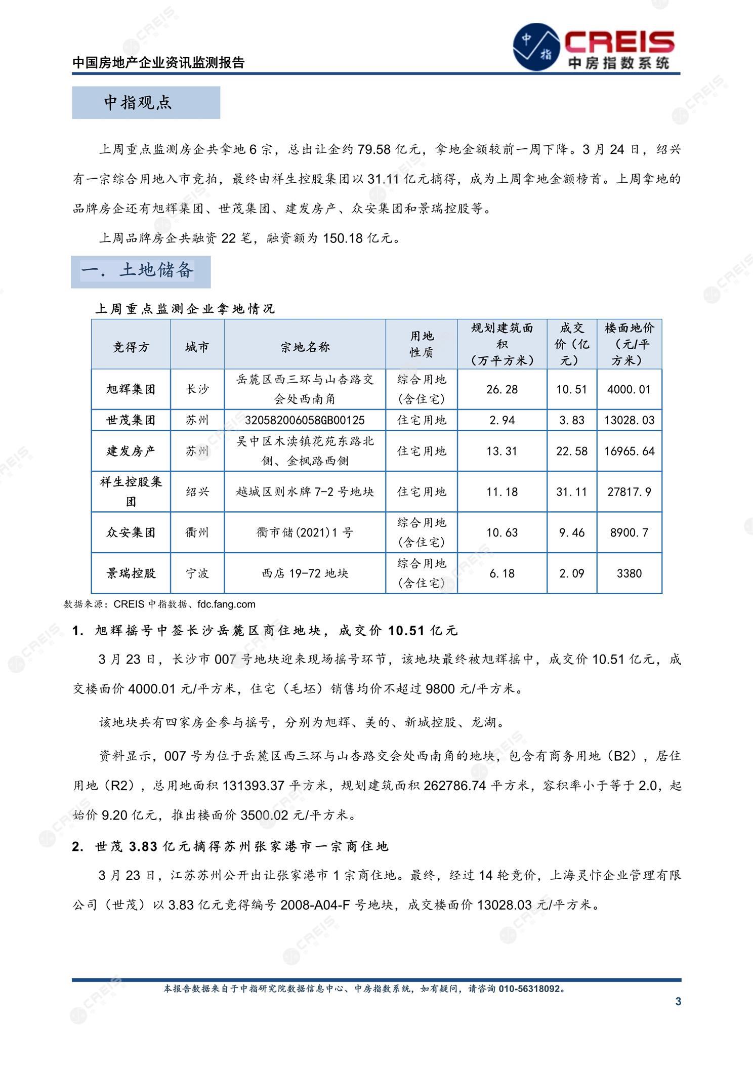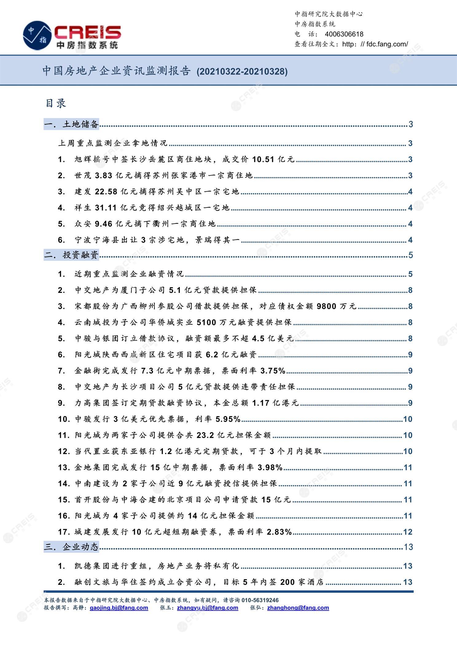 《中国房地产企业资讯监测报告(2021年3月22日-2021年3月28日)》