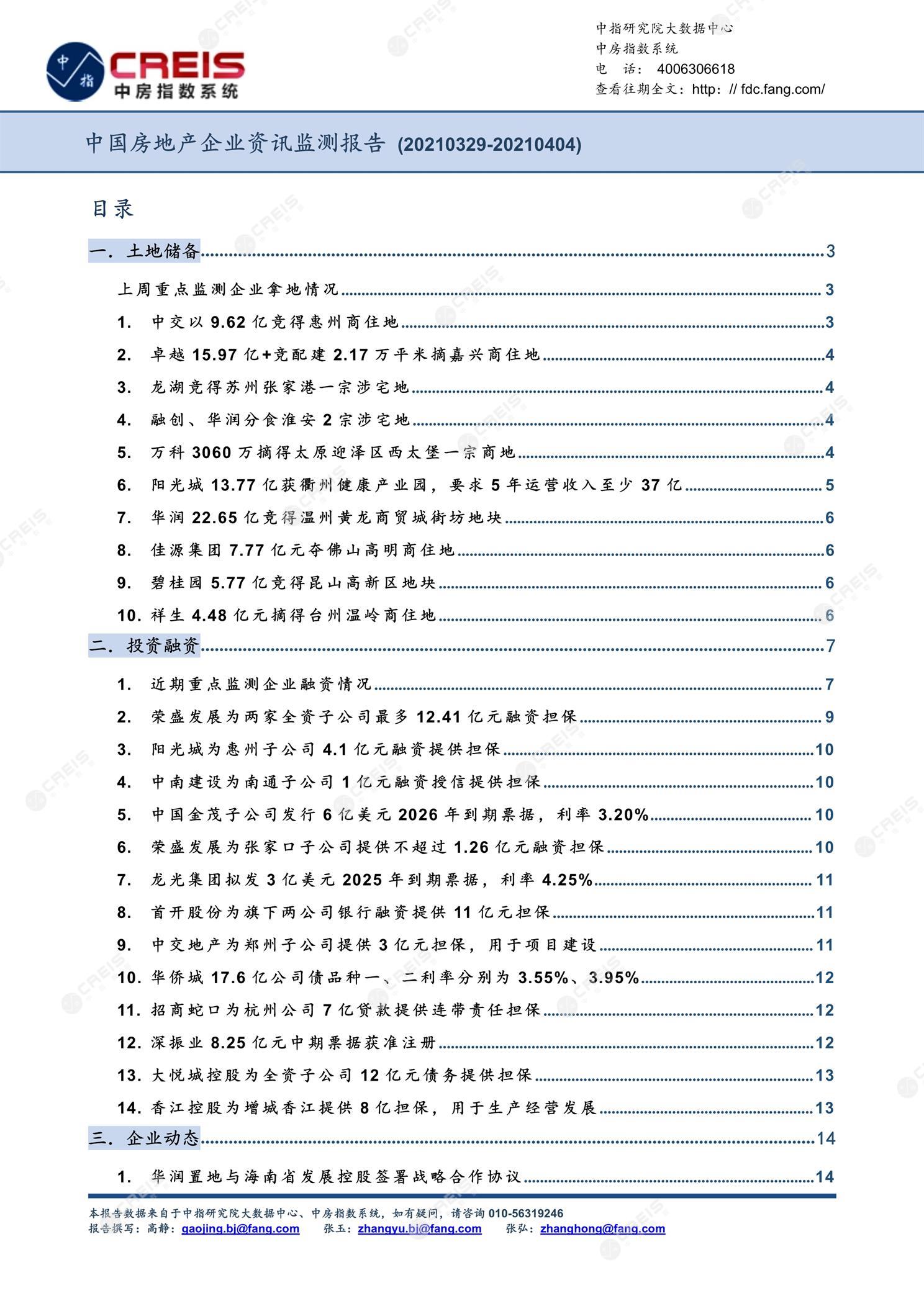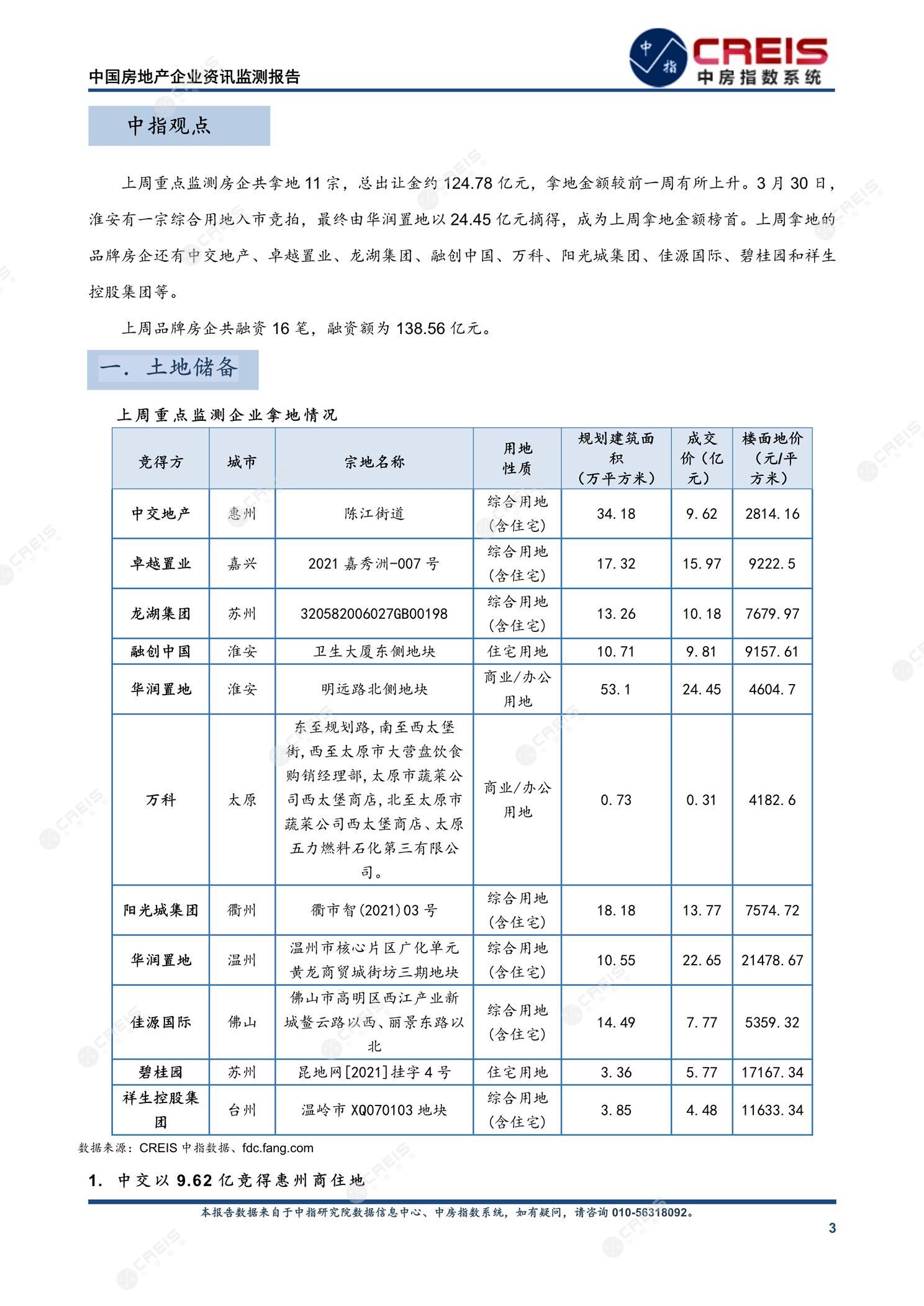 《中国房地产企业资讯监测报告(2021年3月29日-2021年4月4日)》