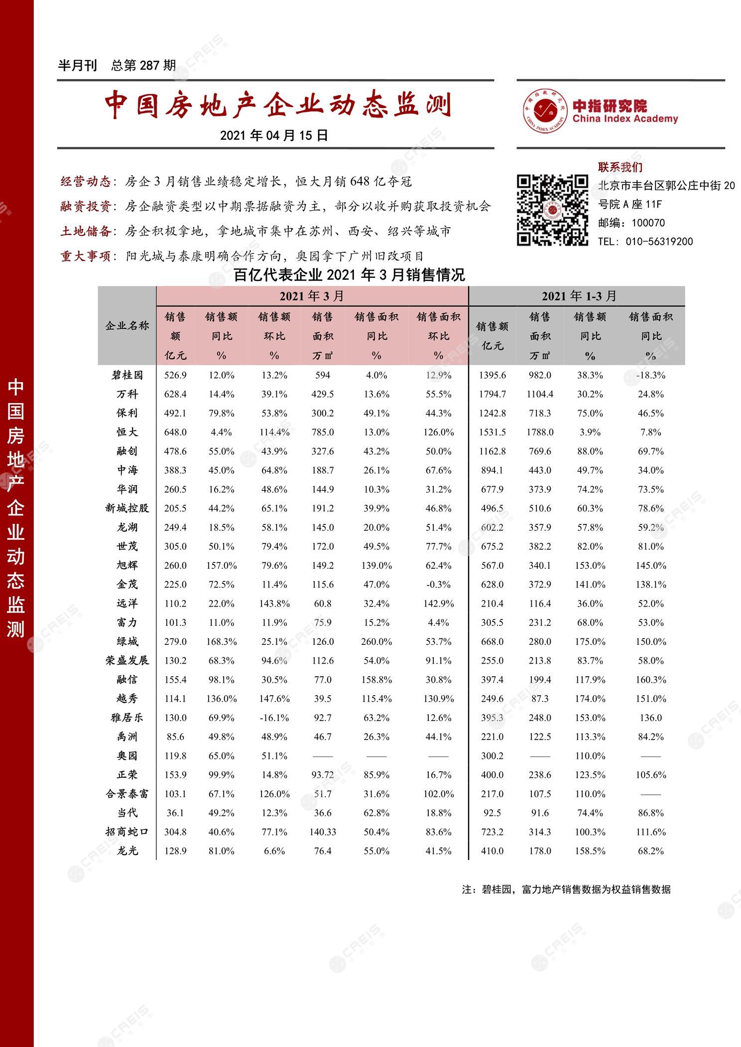 中国房地产企业动态监测第287期