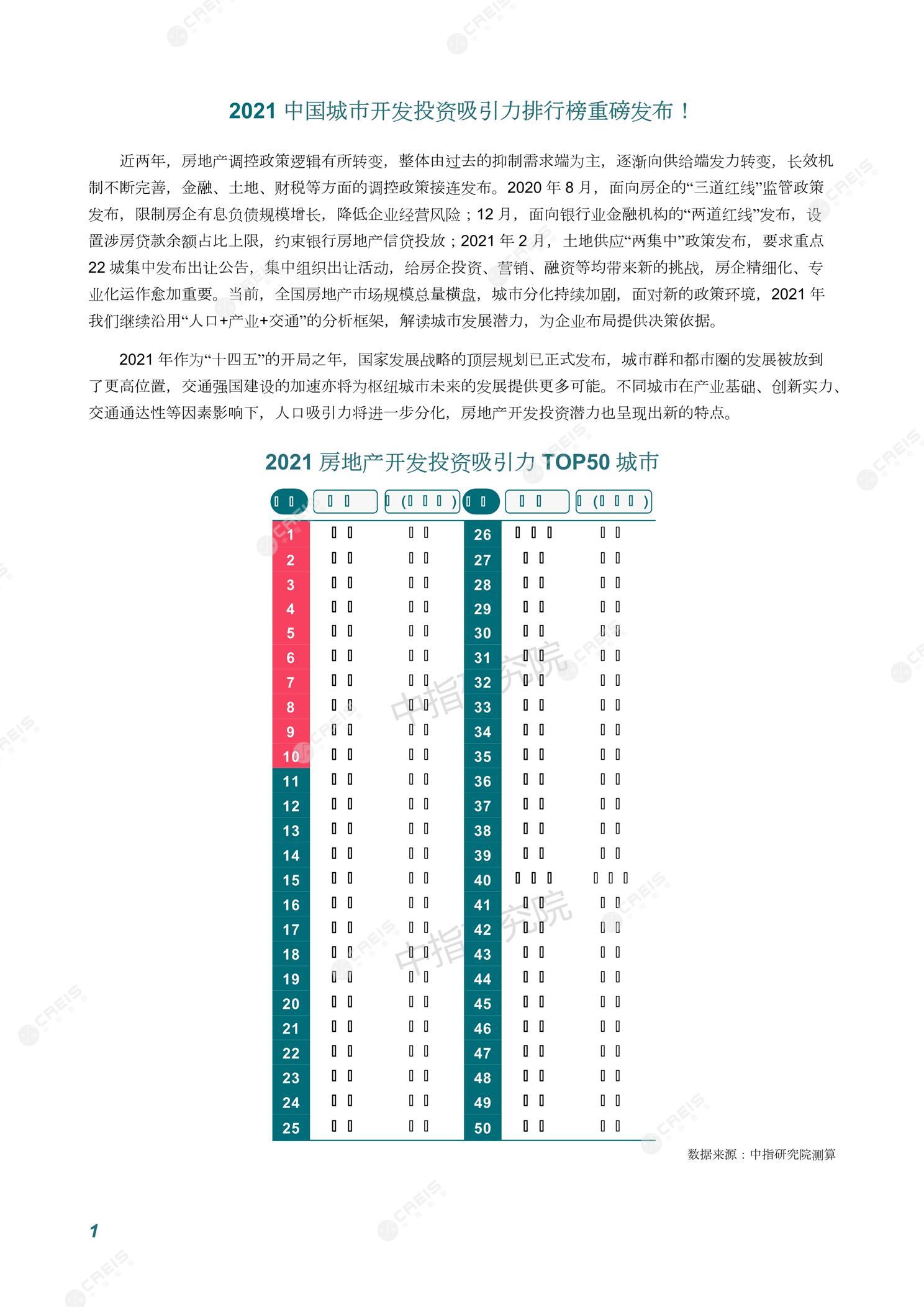 《中指丨2021中国城市开发投资吸引力排行榜重磅发布!》