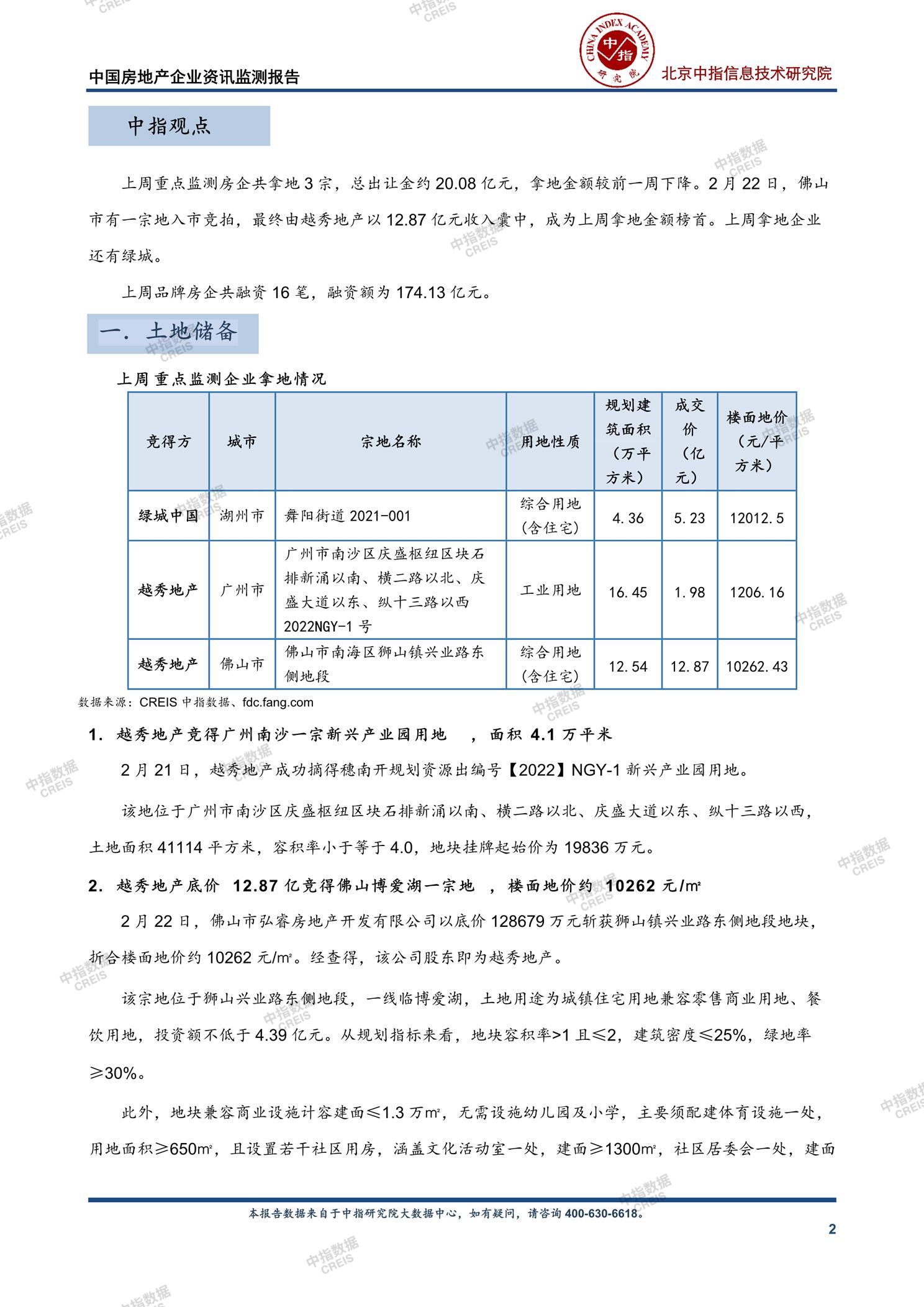 《中国房地产企业资讯监测报告(2022年2月21日-2022年2月27日)》
