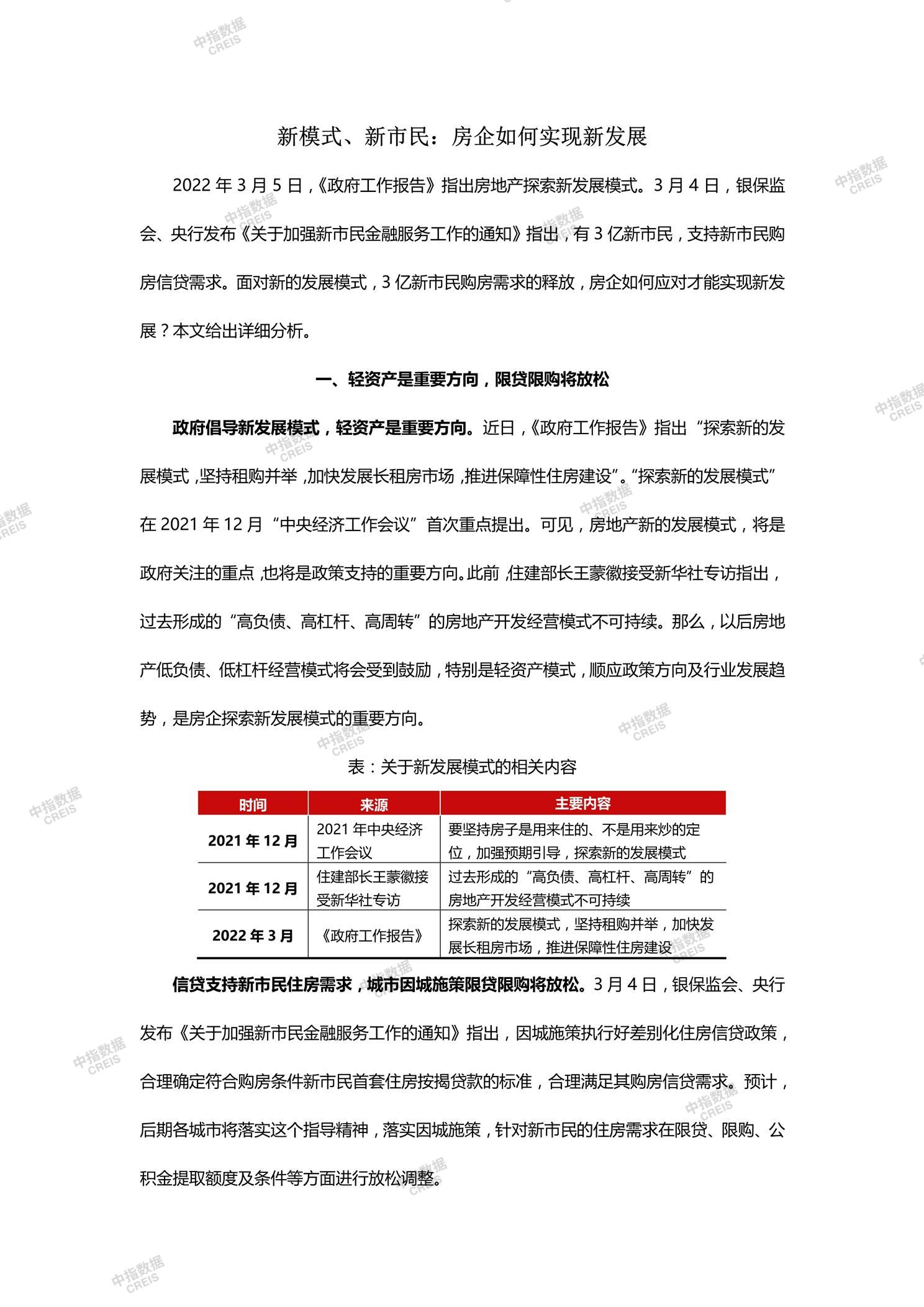 • [摘要] 2022年3月5日,《政府工作报告》指出房地产探索新发展模式。3月4日,银保监会、央行发布《关于加强新市民金融服务工作的通知》指出,有3亿新市民,支持新市民购房信贷需求。面对新的发展模式,3亿新市民购房需求的释放,房企如何应对才能实现新发展?本文给出详细分析。