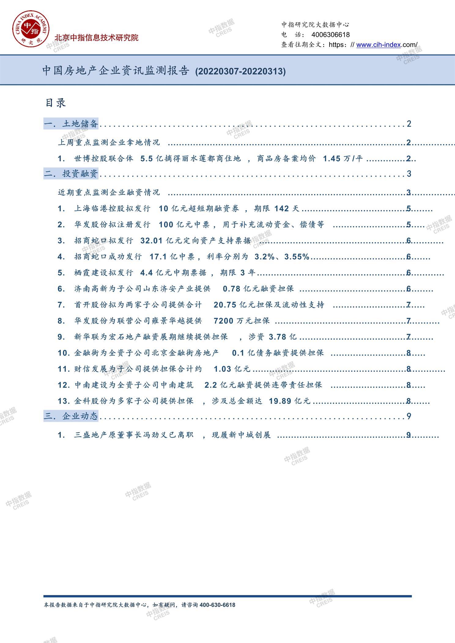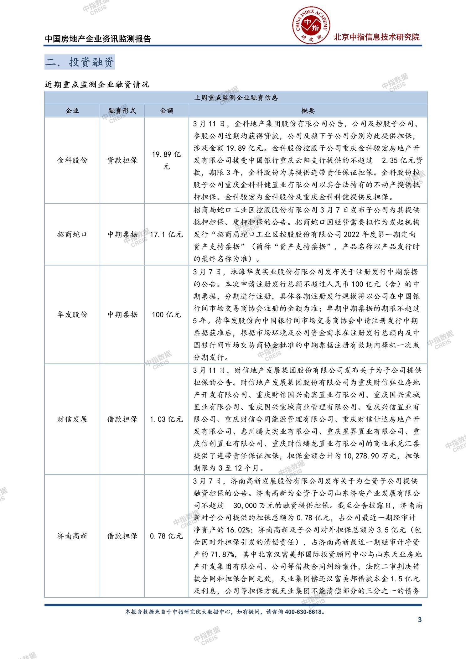 《中国房地产企业资讯监测报告(2022年3月7日-2022年3月13日)》