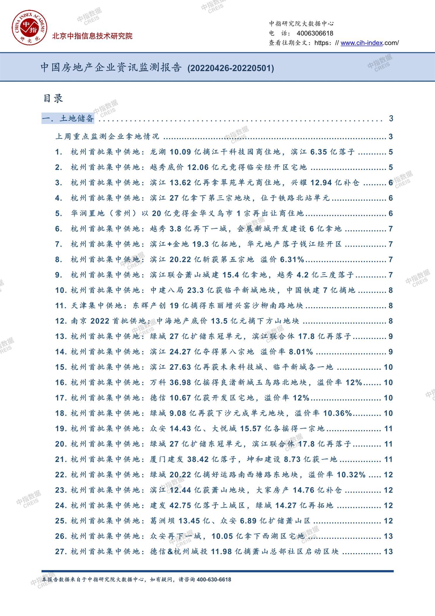 《中国房地产企业资讯监测报告(2022年4月25日-2022年5月1日)》