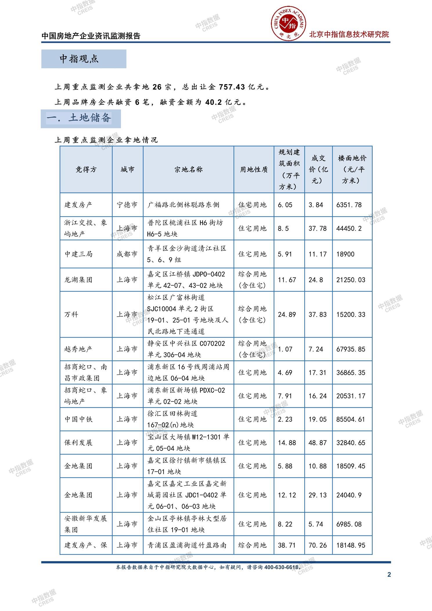 2026年1月全国房地产企业拿地TOP100排行榜