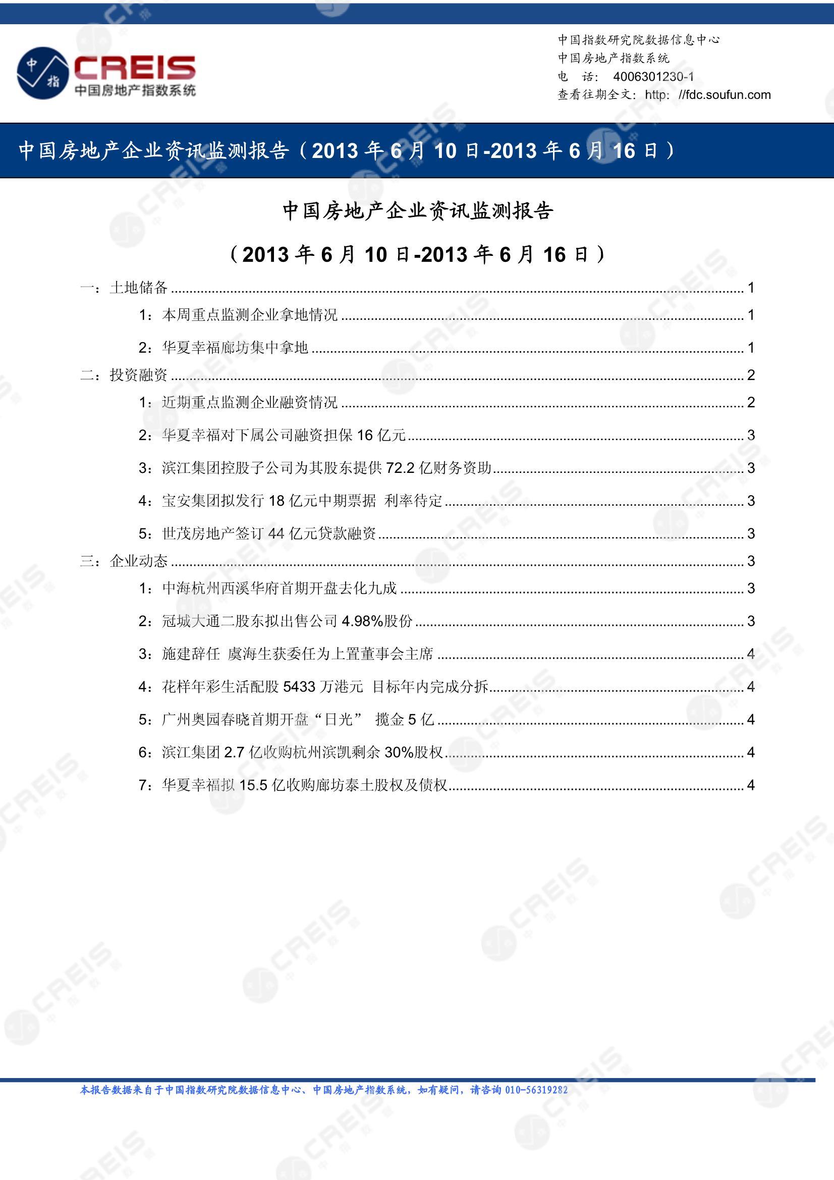 《中国房地产企业资讯监测报告(2013年6月10日-2013年6月16日)》