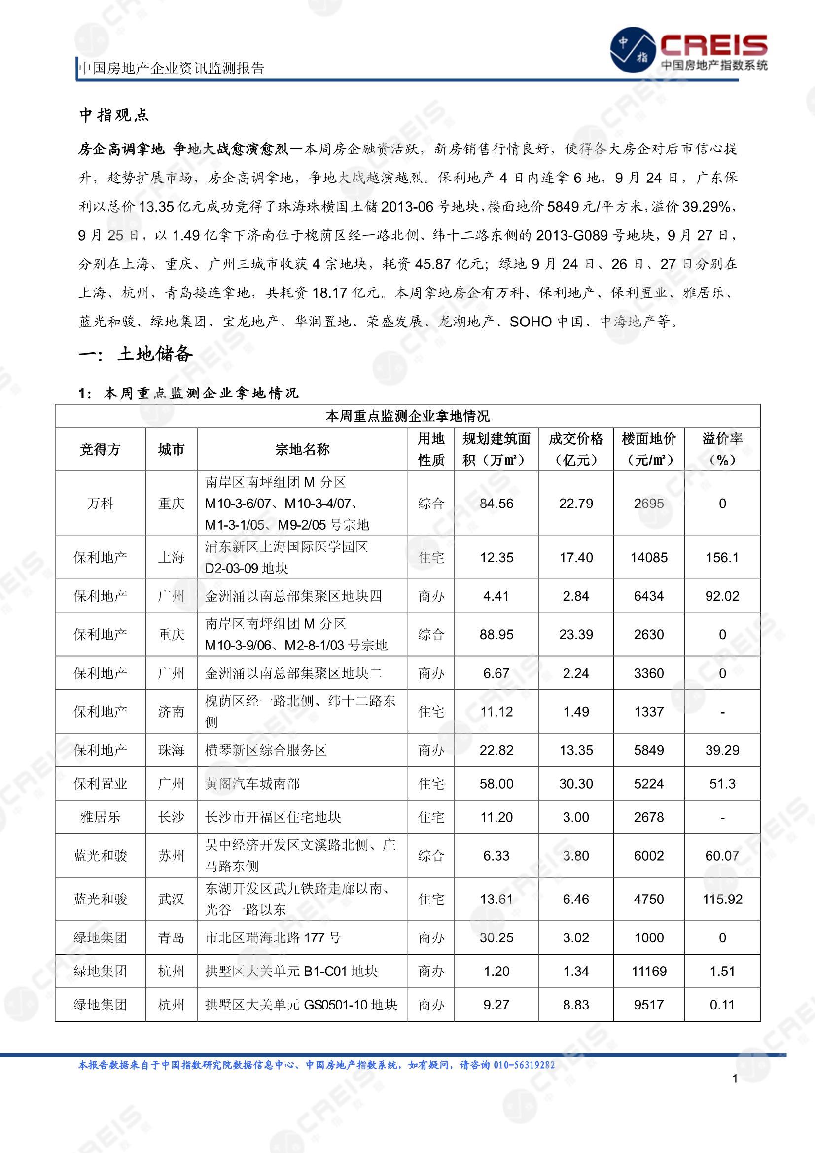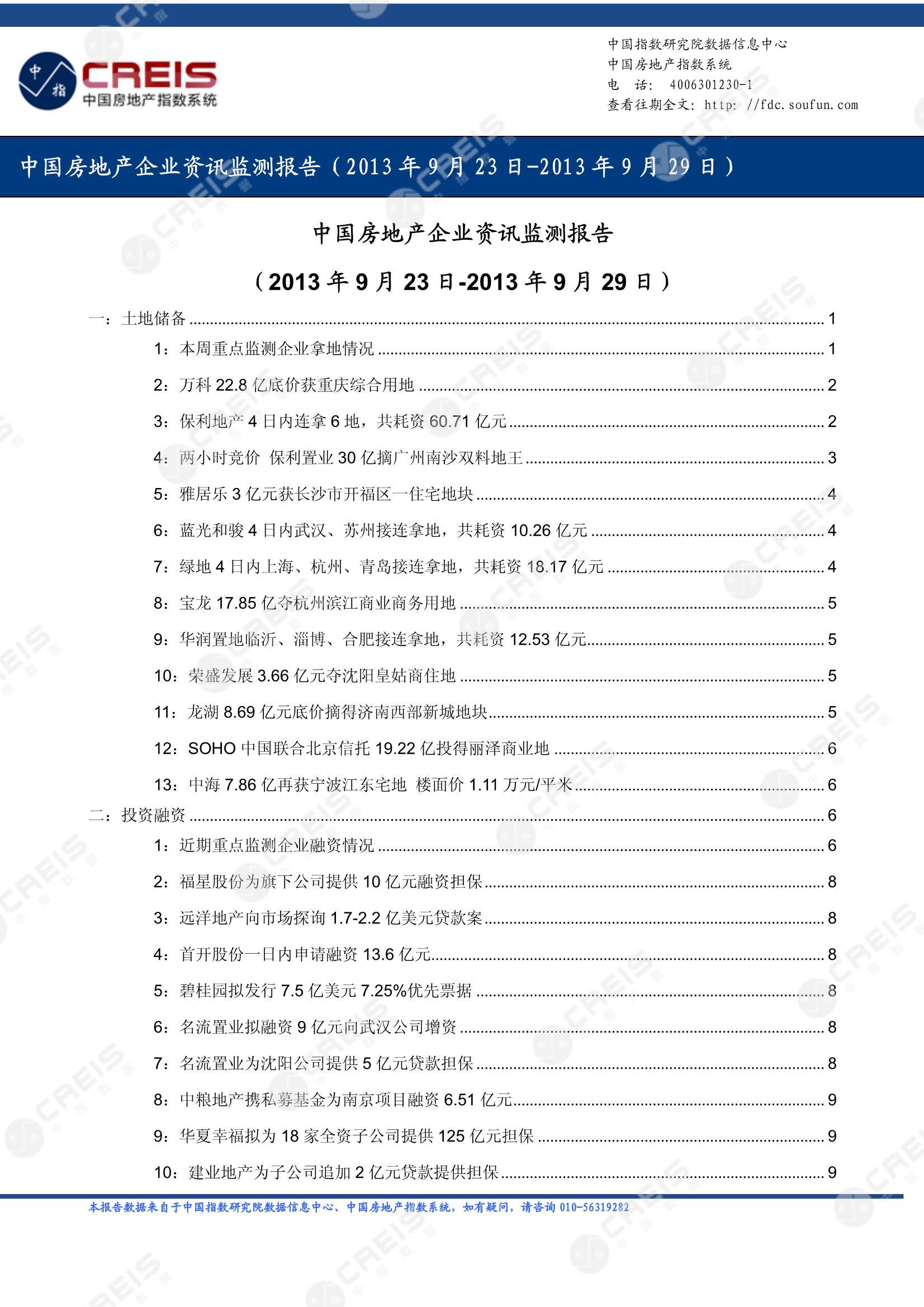 《中国房地产企业资讯监测报告(2013年9月23日-2013年9月29日)》