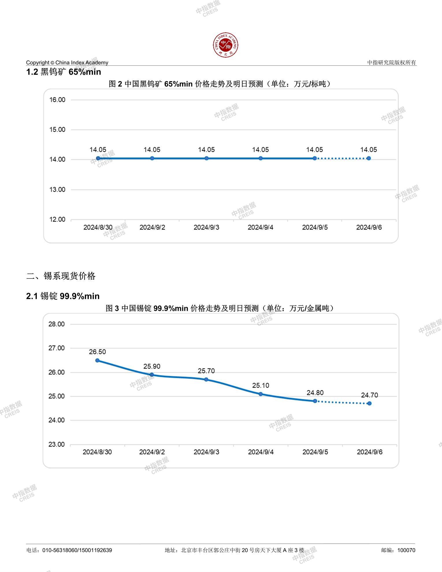 中指钨锡日报(2024-9-5)【锡锭盘面跌势放缓,现货市场交易略有升温;钨企持续挺价】