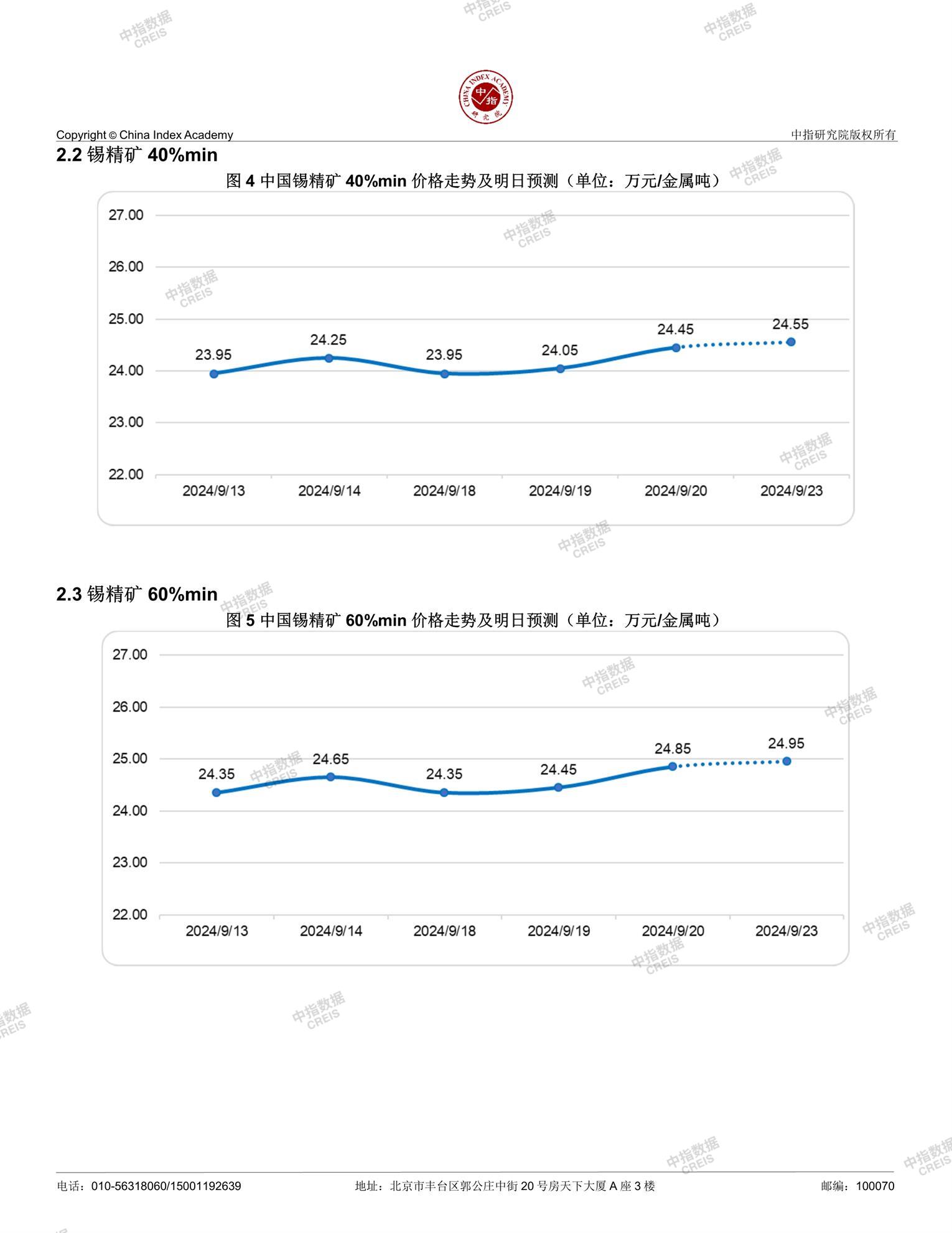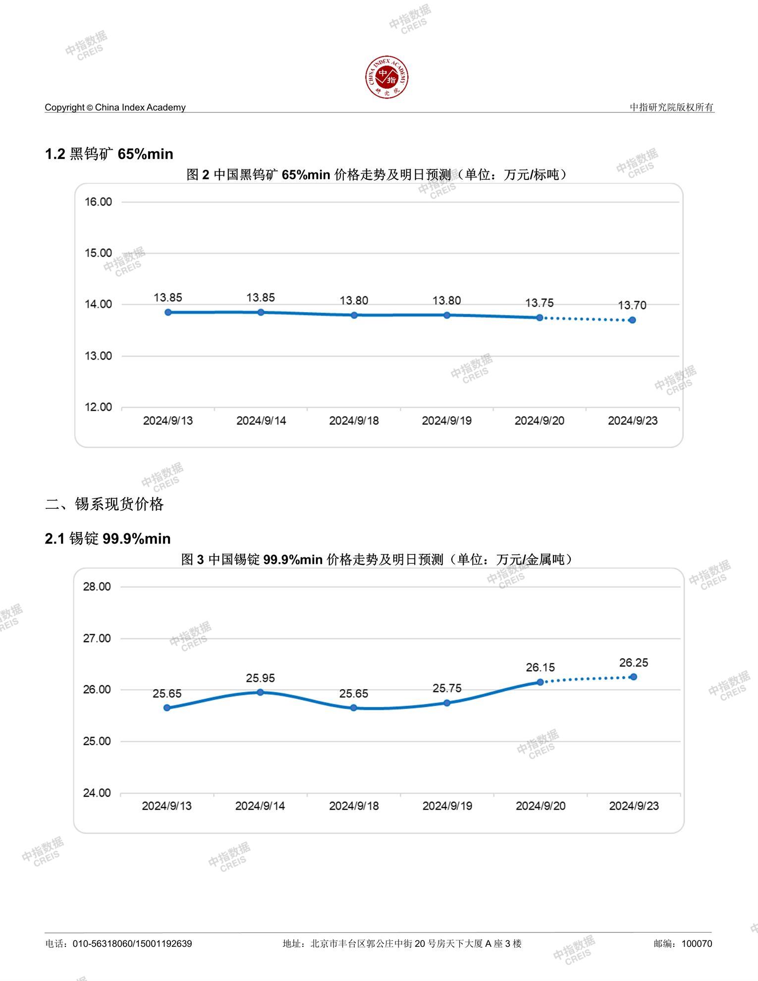 中指钨锡日报(2024-9-20)【锡价继续走高,但消费商观望;钨价继续下探,业内人士对后市悲观】