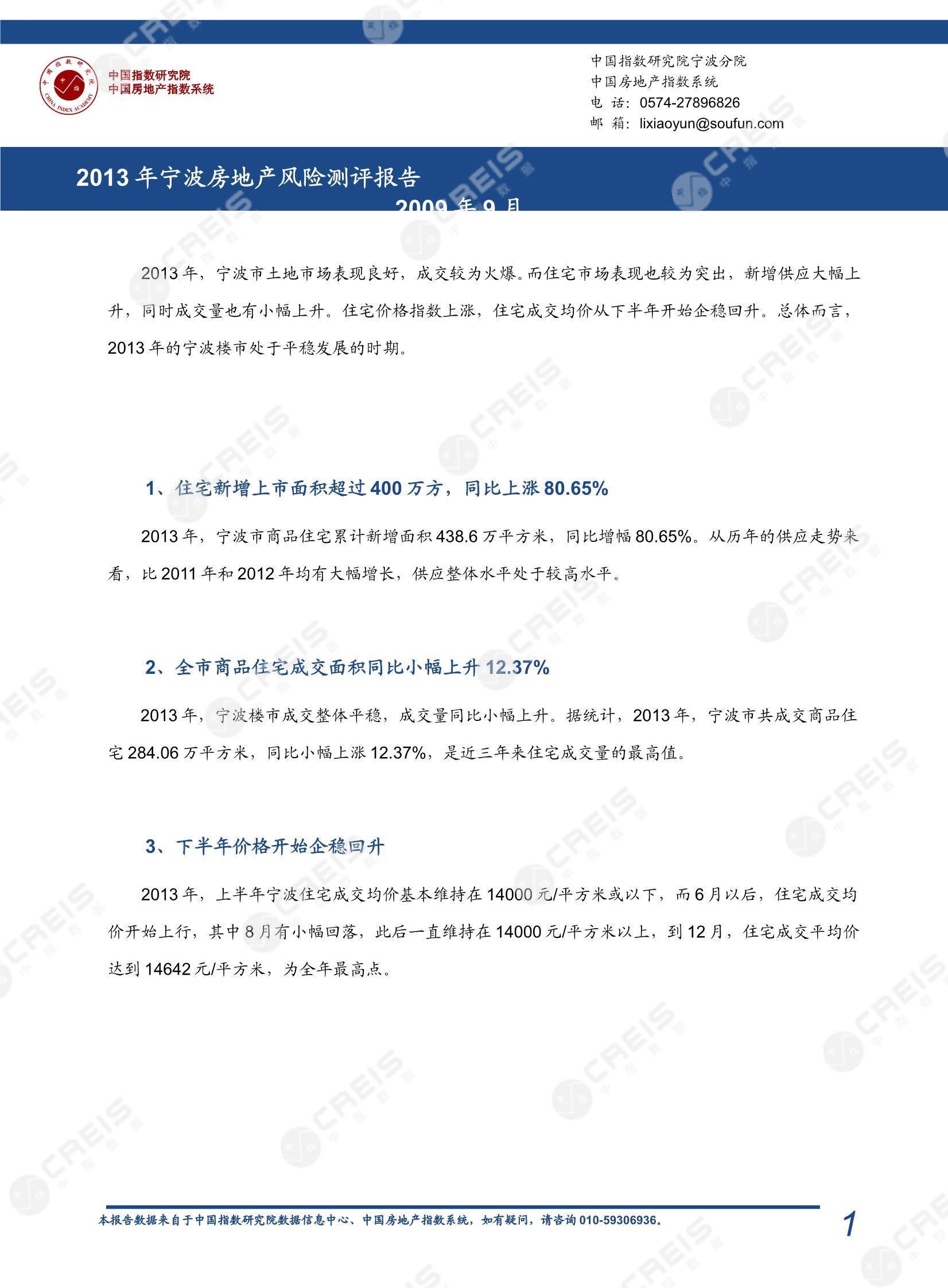 《宁波房地产市场风险测评报告(2013年)》