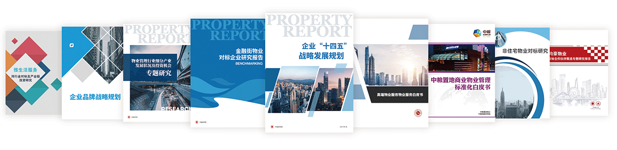 中指研究院基于对物业管理行业的深入研究,积累了丰富的优秀企业发展经验,针对企业痛点、难点,输出定制化顾问咨询服务,为不同规模、类型的物业服务企业发展提供针对性建议。包含对标研究、发展战略研究、品牌战略规划、非住宅业态研究及多种经营研究等。